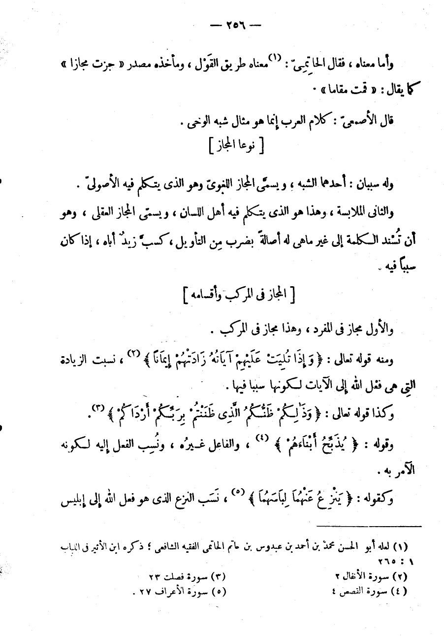 وَالْأَوَّلُ مَجَازٌ فِي الْمُفْرَدِ وَهَذَا مَجَازٌ فِي الْمُرَكَّبِ