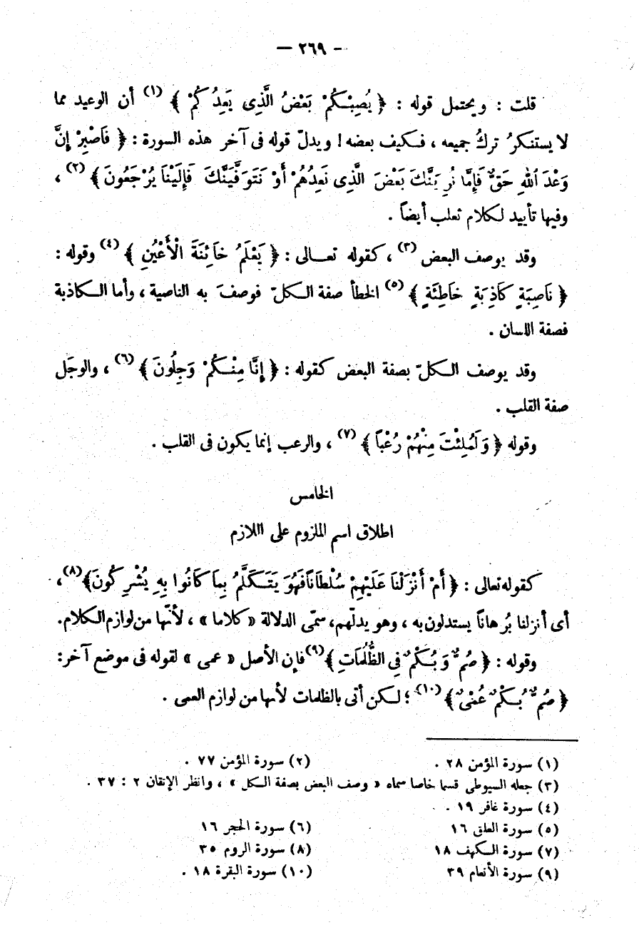 كَقَوْلِهِ تَعَالَى: {أَمْ أَنْزَلْنَا عَلَيْهِمْ سُلْطَانًا فَهُوَ يتكلم بما كانوا به يشركون} أَيْ: أَنْزَلْنَا بُرْهَانًا يَسْتَدِلُّونَ بِهِ وَهُوَ يَدُلُّهُمْ سَمَّى الدَّلَالَةَ كَلَامًا لِأَنَّهَا مِنْ لَوَازِمِ الْكَلَامِ