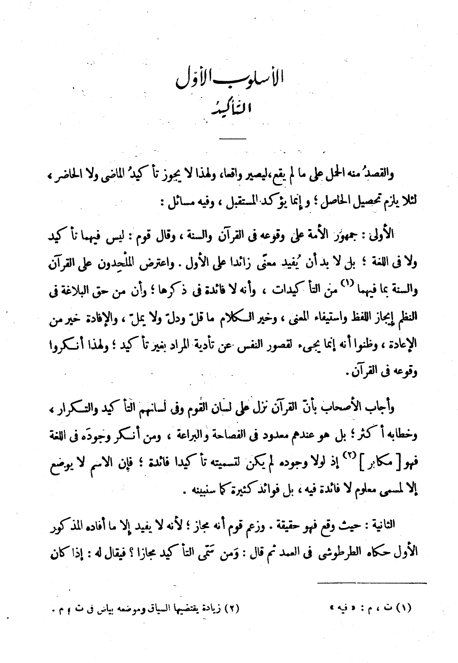 الْأُسْلُوبُ الْأَوَّلُ: التَّأْكِيدُ