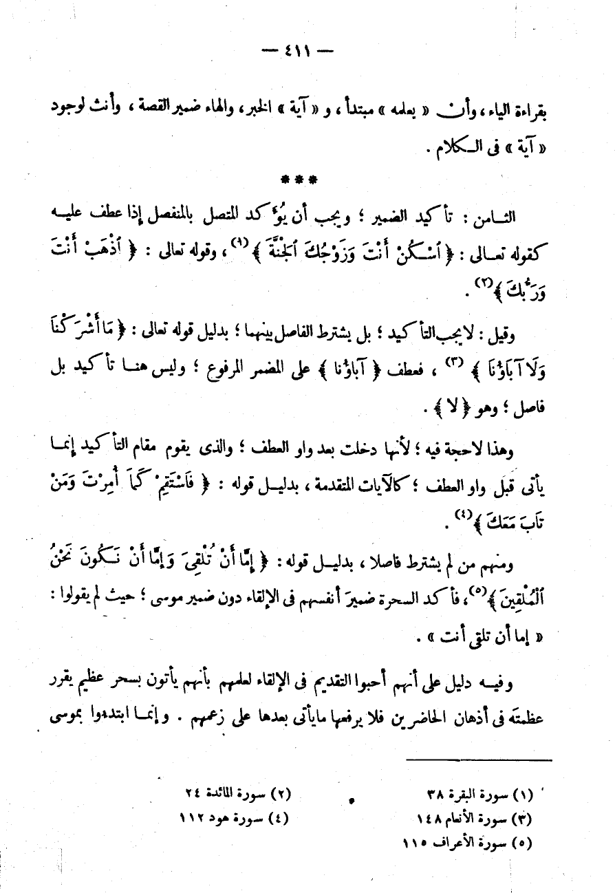 الثَّامِنُ: تَأْكِيدُ الضَّمِيرِ وَيَجِبُ أَنْ يُؤَكَّدَ الْمُتَّصِلُ بِالْمُنْفَصِلِ إِذَا عُطِفَ عَلَيْهِ كَقَوْلِهِ تعالى: {اسكن أنت وزوجك الجنة} وقوله تعالى: {فاذهب أنت وربك}