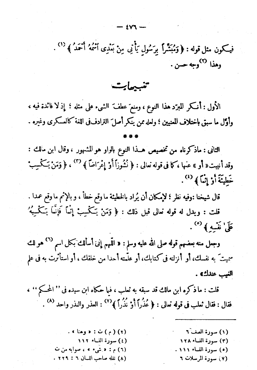 قُلْتُ: مَا ذَكَرَهُ ابْنُ مَالِكٍ قَدْ سَبَقَهُ بِهِ ثَعْلَبٌ فِيمَا حَكَاهُ ابْنُ سِيدَهْ فِي الْمُحْكَمِ فَقَالَ ثَعْلَبٌ فِي قَوْلِهِ تَعَالَى: {عُذْرًا أَوْ نذرا} الْعُذْرُ وَالنُّذْرُ وَاحِدٌ