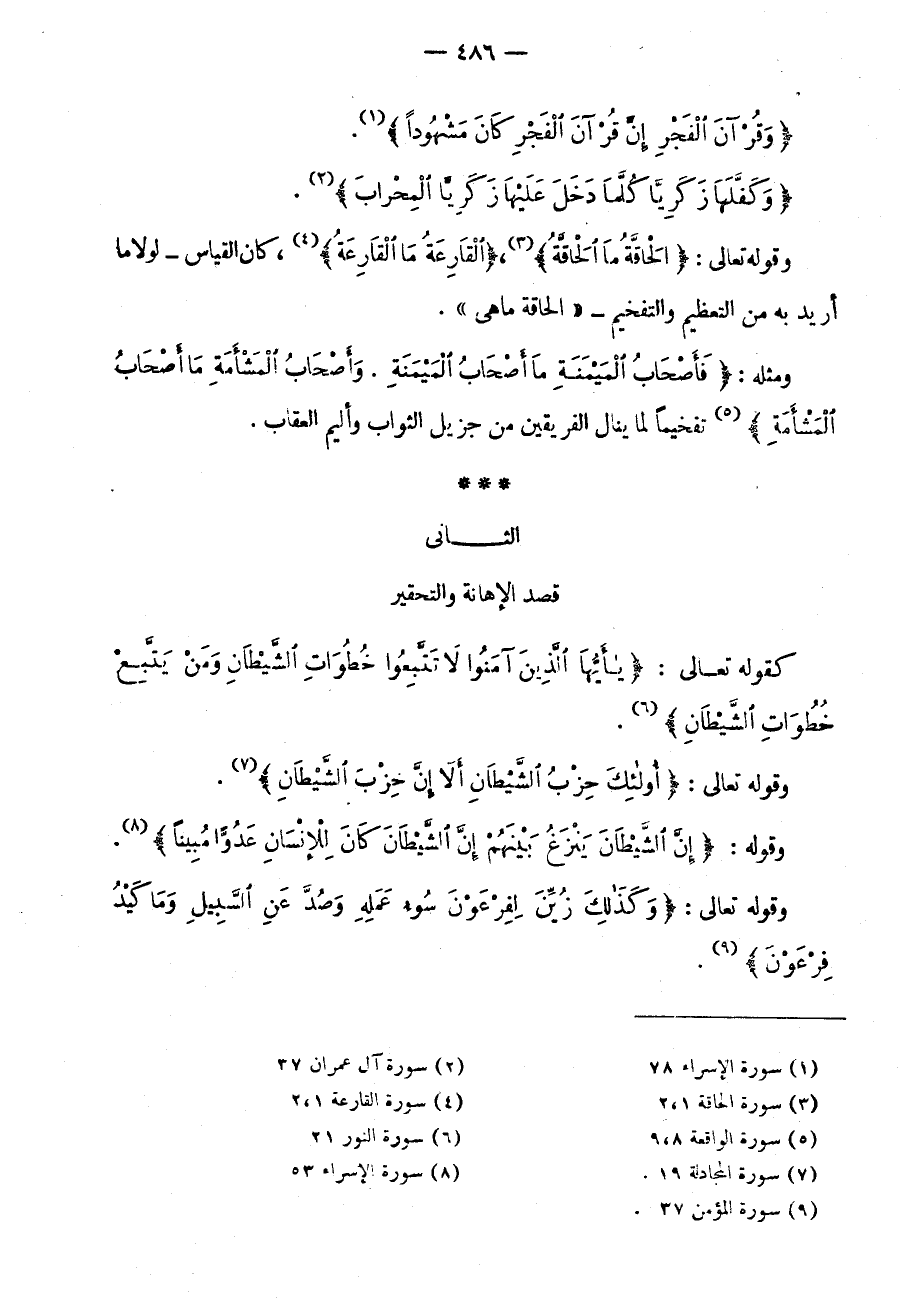 {وَقُرْآنَ الْفَجْرِ إِنَّ قُرْآنَ الْفَجْرِ كَانَ مَشْهُودًا} {وَكَفَّلَهَا زَكَرِيَّا كُلَّمَا دَخَلَ عَلَيْهَا زَكَرِيَّا الْمِحْرَابَ} وقوله تعالى: {الحاقة. ما الحاقة} {القارعة. ما الْقَارِعَةِ} كَانَ الْقِيَاسُ ـ لَوْلَا مَا أُرِيدَ بِهِ مِنَ التَّعْظِيمِ وَالتَّفْخِيمِ ـ " الْحَاقَّةُ مَا هِيَ "