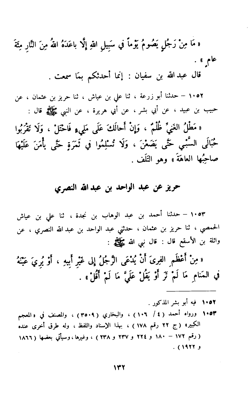 §حَرِيزٌ عَنْ عَبْدِ الْوَاحِدِ بْنِ عَبْدِ اللَّهِ النَّصْرِيِّ