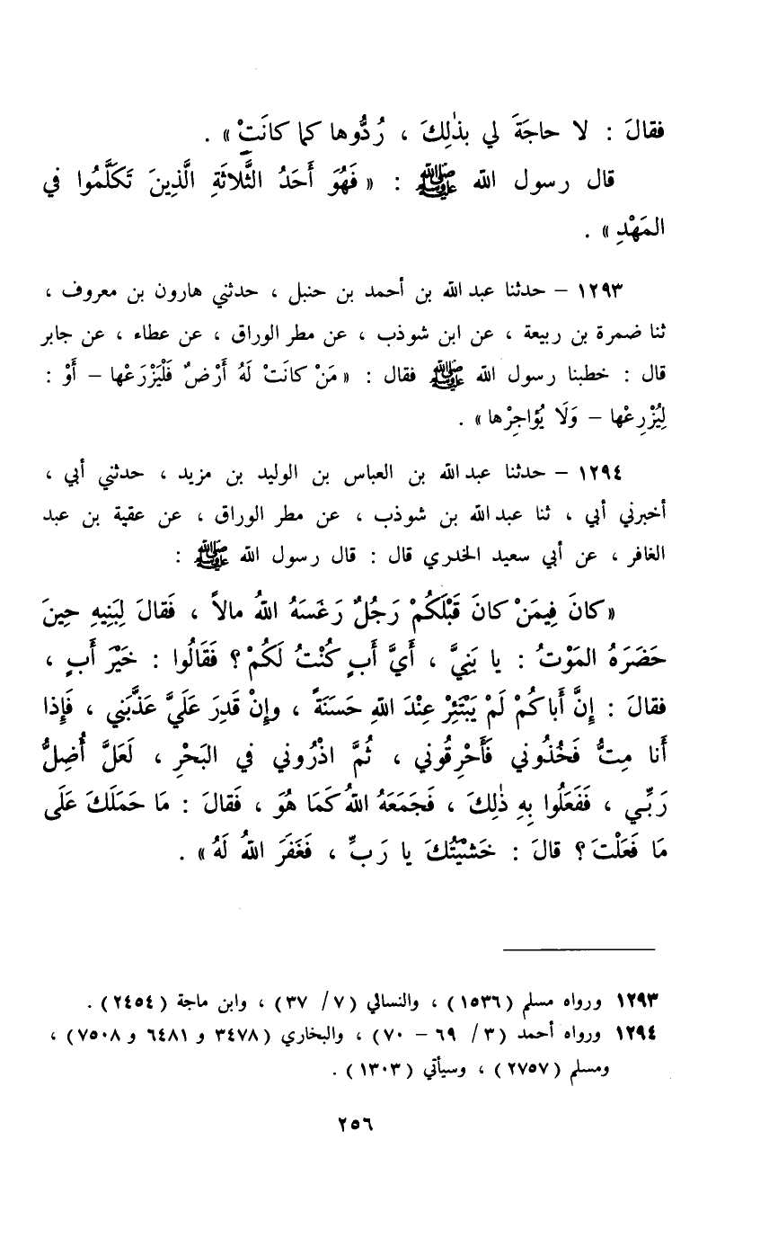 1294 - حَدَّثَنَا عَبْدُ اللَّهِ بْنُ الْعَبَّاسِ بْنِ الْوَلِيدِ بْنِ مَزِيدٍ، حَدَّثَنِي أَبِي، أَخْبَرَنِي أَبِي، ثَنَا عَبْدُ اللَّهِ بْنُ شَوْذَبٍ، عَنْ مَطَرٍ الْوَرَّاقِ، عَنْ عُقْبَةَ بْنِ عَبْدِ الْغَافِرِ، عَنْ أَبِي سَعِيدٍ الْخُدْرِيِّ، قَالَ: قَالَ رَسُولُ اللَّهِ صَلَّى اللهُ عَلَيْهِ وَسَلَّمَ: §" كَانَ فِيمَنْ كَانَ قَبْلَكُمْ رَجُلٌ رَغَسَهُ اللَّهُ مَالًا , فَقَالَ لِبَنِيهِ حِينَ حَضَرَهُ الْمَوْتُ: يَا بَنِيَّ، أَيَّ أَبٍ كُنْتُ لَكُمْ؟ فَقَالُوا: خَيْرُ أَبٍ , فَقَالَ: إِنَّ أَبَاكُمْ لَمْ يَبْتَئِرْ عِنْدَ اللَّهِ حَسَنَةً، وَإِنْ قَدِرَ عَلَيَّ عَذَّبَنِي , فَإِذَا أَنَا مُتُّ , فَخُذُونِي , فَأَحْرِقُونِي , ثُمَّ اذْرُونِي فِي الْبَحْرِ , لَعَلَّ أُضِلُّ رَبِّي , فَفَعَلُوا بِهِ ذَلِكَ , فَجَمَعَهُ اللَّهُ كَمَا هُوَ , فَقَالَ: «مَا حَمَلَكَ عَلَى مَا فَعَلْتَ؟» قَالَ: خَشْيَتُكَ يَا رَبِّ , فَغَفَرَ اللَّهُ لَهُ "