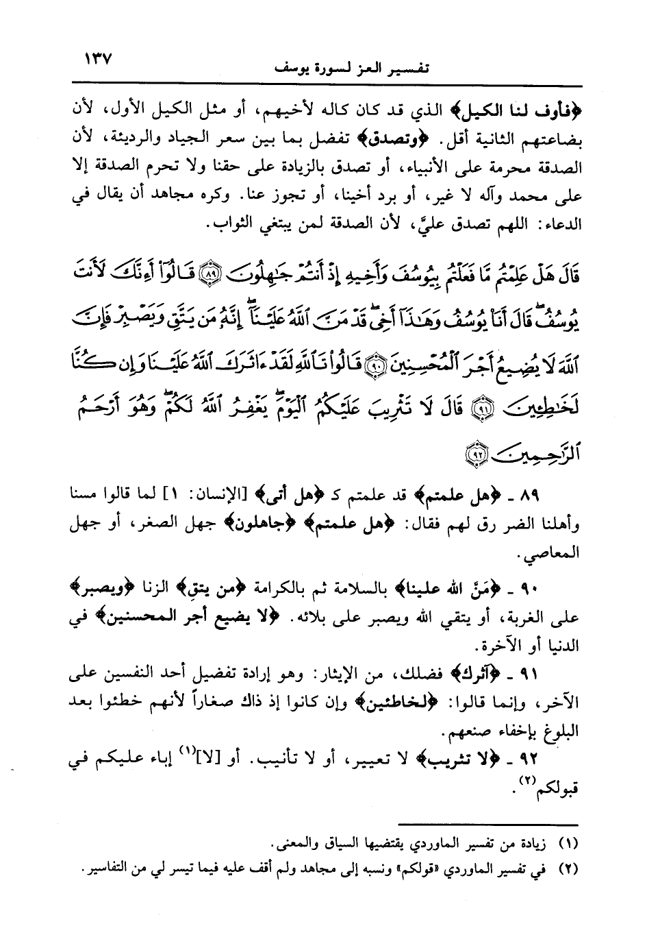 92 - {لا تَثْرِيبَ} لا تعيير، أو لا تأنيب. أو [لا] إباء عليكم في قبولكم.
