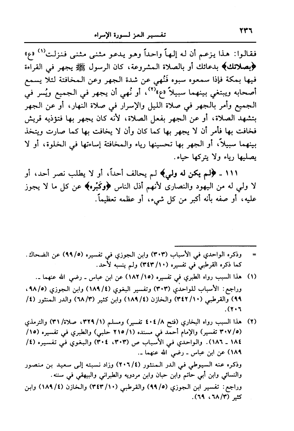 111 - {لم يَكُن لُّهُ وَلِىٌّ} لم يحالف أحداً، أو لا يطلب نصر أحد، أو لا ولي له من اليهود والنصارى لأنهم أذل الناس {وَكَبِّرْهُ} عن كل ما لا يجوز عليه، أو صفه بأنه أكبر من كل شيء، أو عظمه تعظيماً.