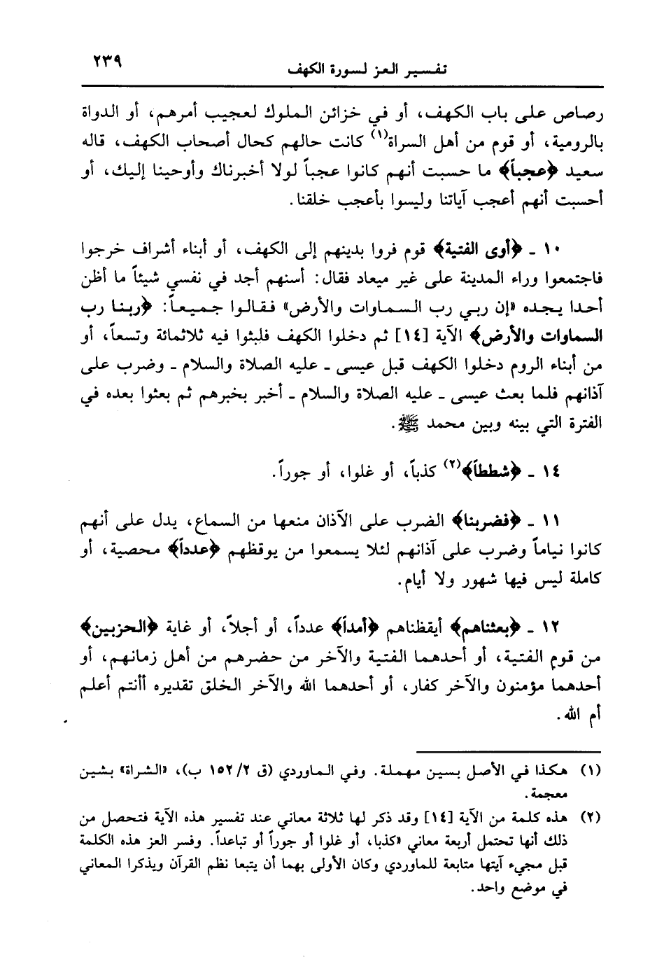 12 - {بَعَثنَاهُمْ} أيقظناهم {أَمَداً} عدداً، أو أجلاً، أو غاية {الْحِزْبَيْنِ} من قوم الفتية، أو أحدهما الفتية والآخر من حضرهم من أهل زمانهم، أو أحدهما مؤمنون والآخر كفار، أو أحدهما الله والآخر الخلق تقديره أأنتم أعلم أم الله. أ