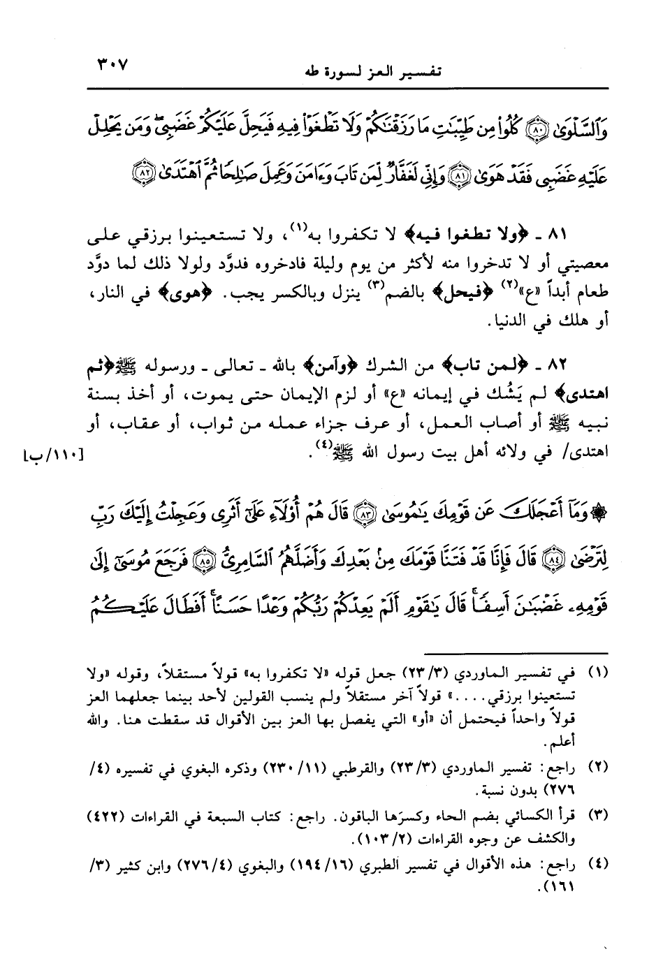 والسلوى كلوا من طيبات ما رزقناكم ولا تطغوا فيه فيحل عليكم غضبى ومن يحلل عليه غضبى فقد هوى 81 وإنّى لغفارٌ لمن تاب وءامن وعمل صالحاً ثم اهتدى}