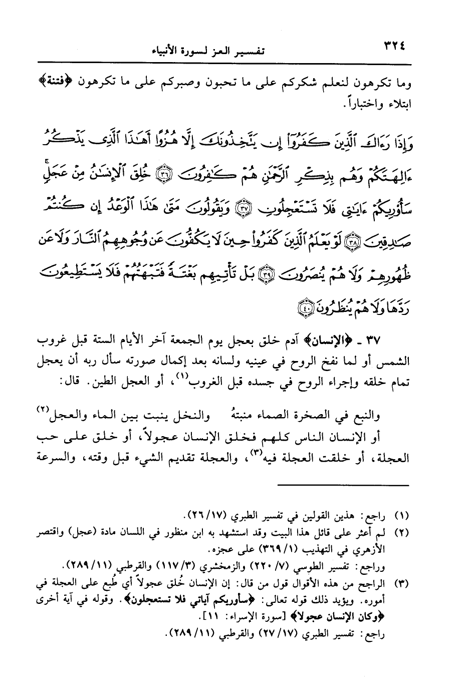 37 - {الإِنسَانُ} آدم خلق بعجل يوم الجمعة آخر الأيام الستة قبل غروب الشمس أو لما نفخ الروح في عينيه ولسانه بعد إكمال صورته سأل ربه أن يعجل تمام خلقه وإجراء الروح في جسده قبل الغروب، أوالعجل الطين. قال:
