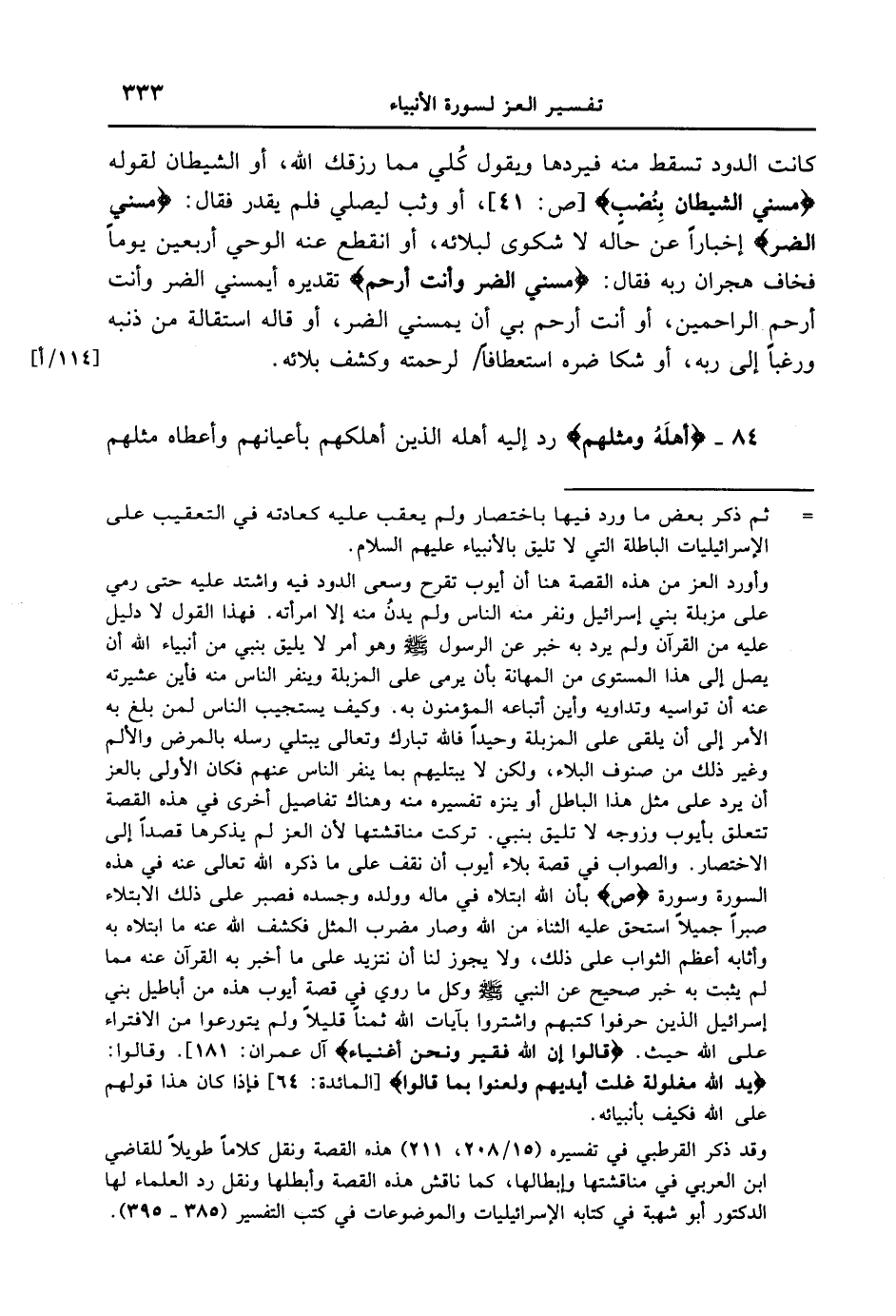 84 - {أَهْلَهُ وَمِثْلَهُم} رد إليه أهله الذين أهلكهم بأعيانهم وأعطاه مثلهم