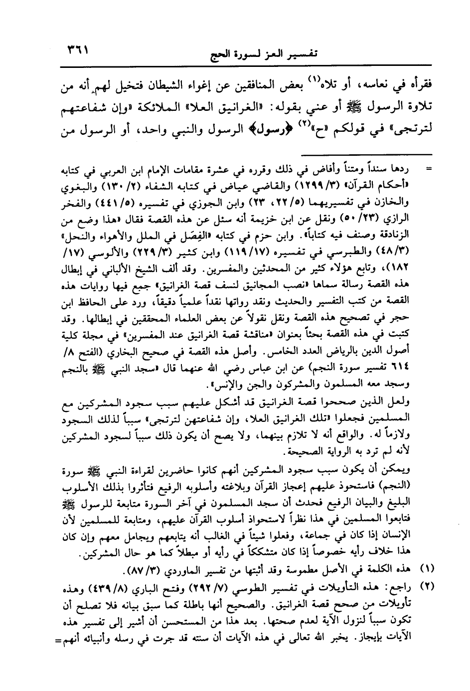 فقرأه في نعاسه، أو تلاه بعض المنافقين عن إغواء الشيطان فتخيل لهم أنه من تلاوة الرسول [صلى الله عليه وسلم] أوعني بقوله: " الغرانيق العلا " الملائكة " وإن شفاعتهم لترتجى " في قولكم " ح " {رَّسُولٍ} الرسول والنبي واحد، أو الرسول من