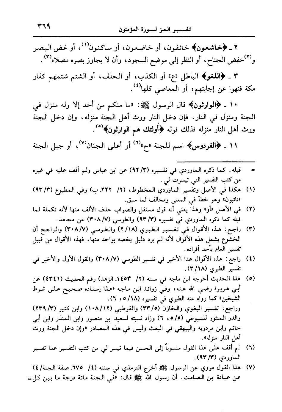 11 - {الْفِرْدَوْسَ} اسم للجنة " ح " أو أعلى الجنان، أو جبل الجنة