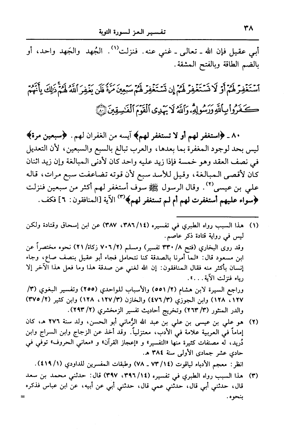 أبي عقيل فإن الله - تعالى - غني عنه. فنزلت. الجُهد والجَهد واحد، أو بالضم الطاقة وبالفتح المشقة. {اسْتَغْفِرْ لَهُمْ أَوْ لا تَسْتَغْفِرْ لهم إن تستغفر لهم سبعين مرة فلن يغفر الله لهم ذلك بأنهم كفروا بالله ورسوله والله لا يهدي القوم الفاسقين}