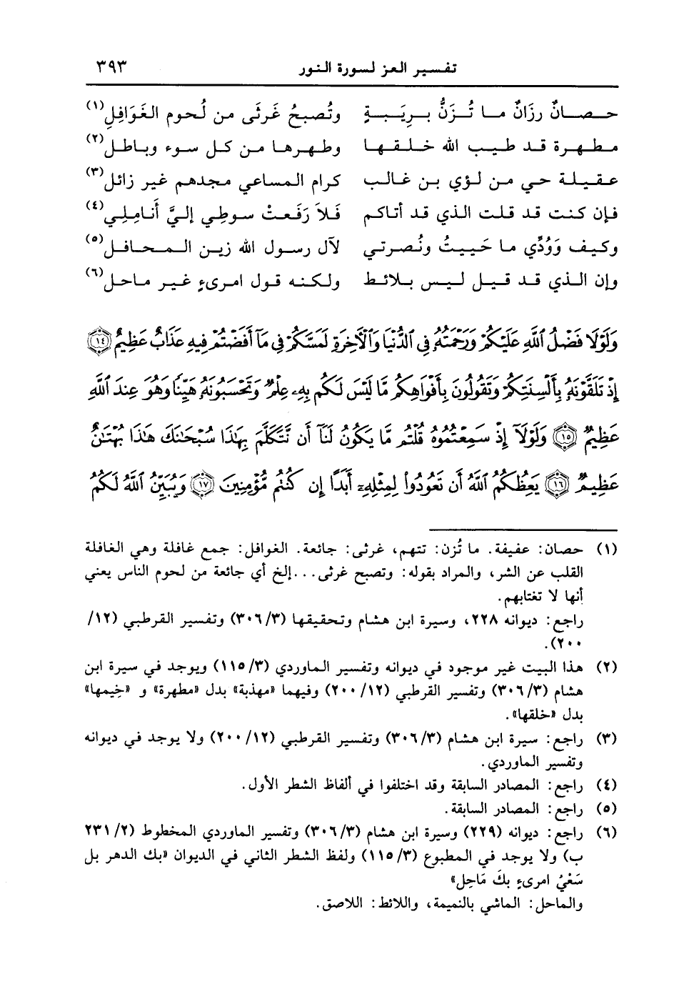 {ولولا فضل الله عليكم ورحمتّه في الدنيا والآخرة لمسّكم في ما أفضتم فيه عذاب عظيم إذ تلقّونه بألسنتكم وتقولون بأفواهكم ما ليس لكم به علمٌ وتحسبونه هيّناً وهو عند الله عظيم ولولا إذ سمعتموه قلتم ما يكون لنا أن نتكلم بهذا سبحانك هذا بهتان عظيمٌ يعظكم الله أن تعودوا لمثله أبداً إن كنتم مؤمنين ويبين الله لكم
