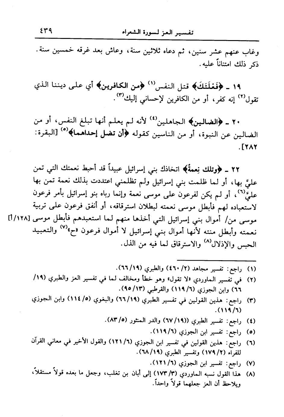19 - {فَعْلَتَكَ} قتل النفس {مِنَ الْكَافِرِينَ} أي على ديننا الذي تقول أنه كفر، أو من الكافرين لإحساني إليك.