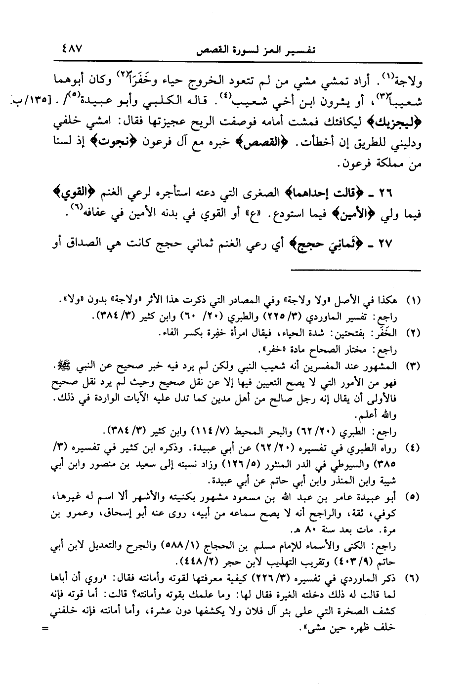 ولاجة. أراد تمشي مشي من لم تتعود الخروج حياء وخَفَرَاً وكان أبوهما شعيباً، أو يثرون ابن أخي شعيب قاله الكلبي وأبو عبيدة / [135 / ب] {لِيَجْزِيَكَ} ليكافئك فمشت أمامه فوصفت الريح عجيزتها فقال: امشي خلفي ودليني للطريق إن أخطأت. {الْقَصَصَ} خبره مع آل فرعون {نَجَوْتَ} إذ لسنا من مملكة فرعون.