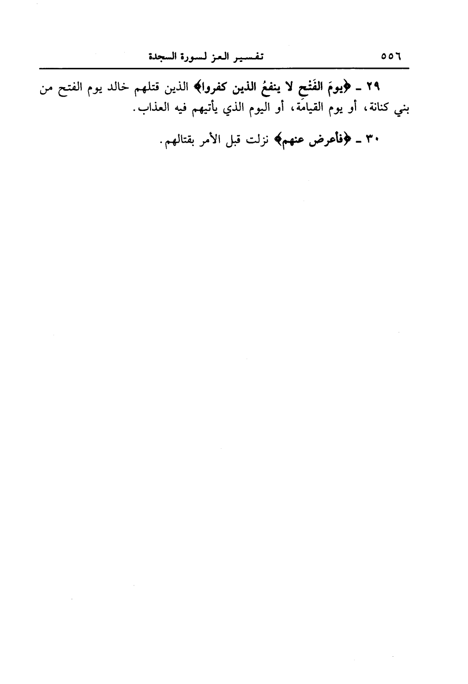 29 - {يَوْمَ الْفَتْحِ لا يَنفَعُ الَّذِينَ كَفَرُواْ} الذين قتلهم خالد يوم الفتح من بني كنانة، أو يوم القيامة، أو اليوم الذي يأتيهم فيه العذاب.