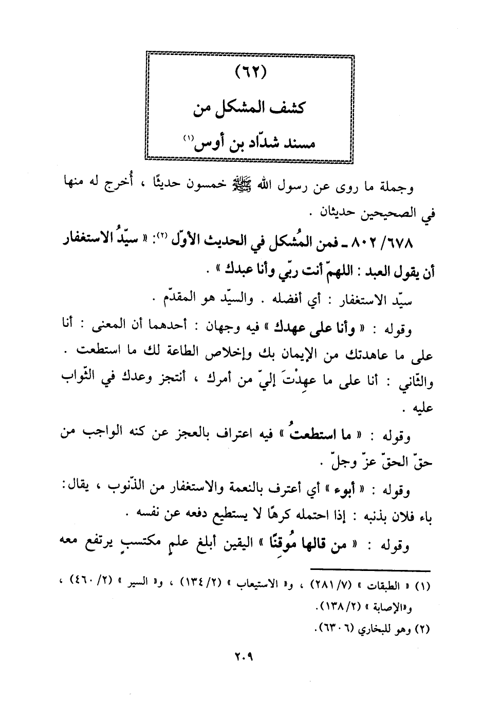 (62) كشف الْمُشكل من مُسْند شَدَّاد بن أَوْس