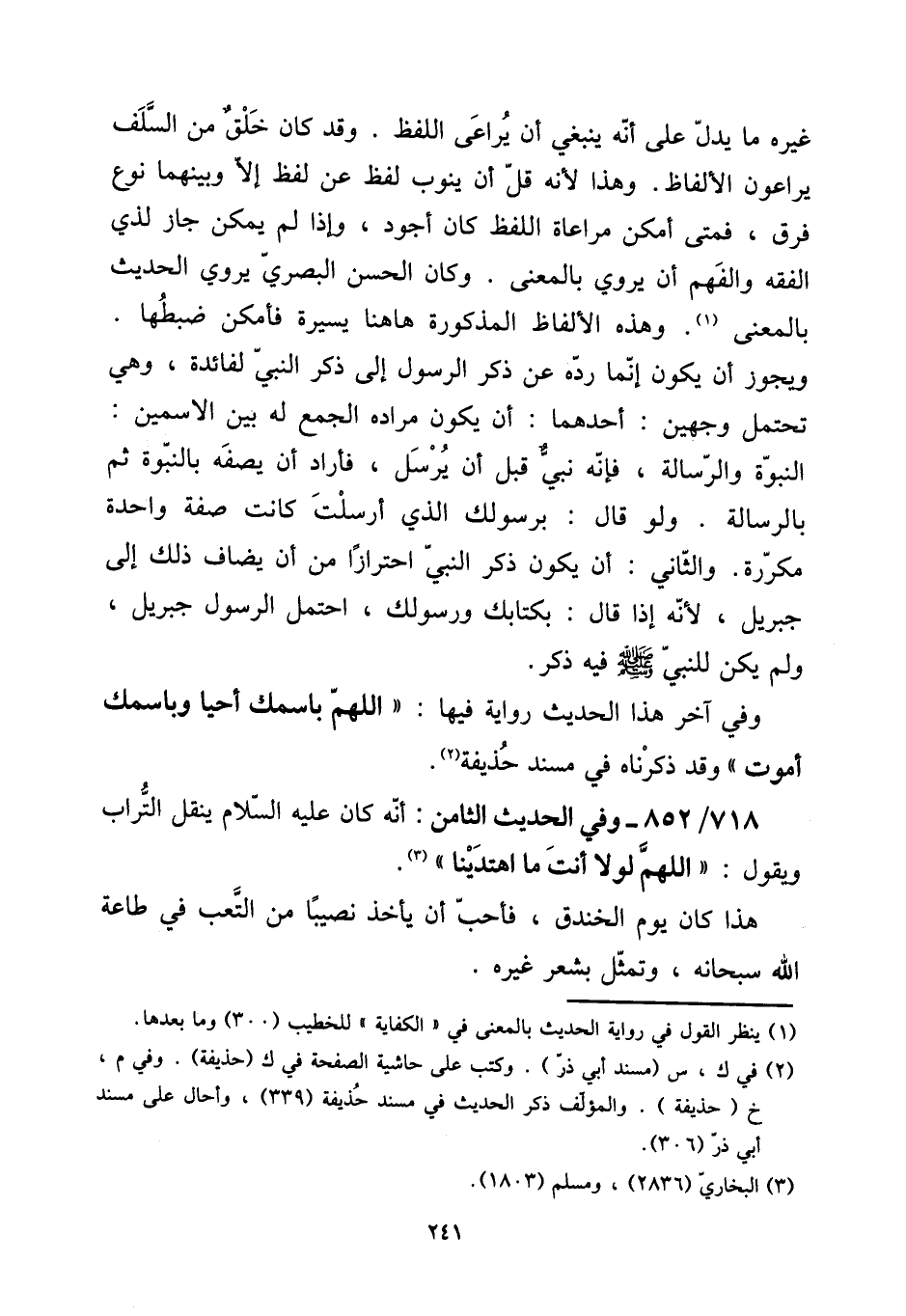 718 - / 852 - وَفِي الحَدِيث الثَّامِن: أَنه كَانَ عَلَيْهِ السَّلَام ينْقل التُّرَاب وَيَقُول: " اللَّهُمَّ لَوْلَا أَنْت مَا اهتدينا ". [15] هَذَا كَانَ يَوْم الخَنْدَق، فَأحب أَن يَأْخُذ نَصِيبا من التَّعَب فِي طَاعَة الله سُبْحَانَهُ، وتمثل بِشعر غَيره.