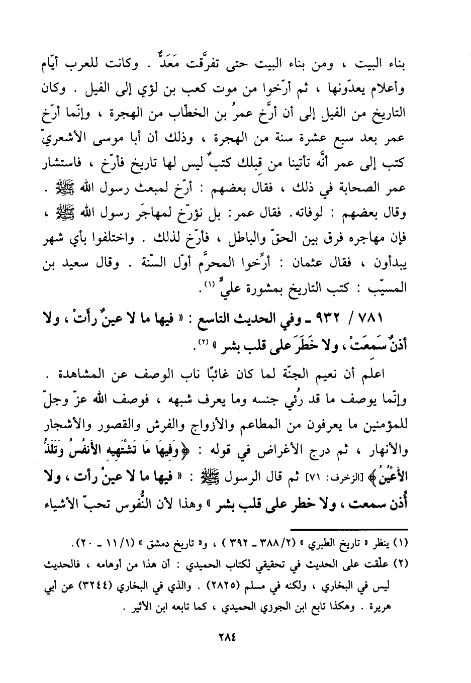 بِنَاء الْبَيْت، وَمن بِنَاء الْبَيْت حَتَّى تَفَرَّقت معد. وَكَانَت للْعَرَب أَيَّام وأعلام يعدونها، ثمَّ أَرخُوا من موت كَعْب بن لؤَي إِلَى الْفِيل. وَكَانَ التَّارِيخ من الْفِيل إِلَى أَن أرخ عمر بن الْخطاب من الْهِجْرَة، وَإِنَّمَا أرخ عمر بعد سبع عشرَة سنة من الْهِجْرَة، وَذَلِكَ أَن أَبَا مُوسَى الْأَشْعَرِيّ كتب إِلَى عمر أَنه تَأْتِينَا من قبلك كتب لَيْسَ لَهَا تَارِيخ فأرخ، فَاسْتَشَارَ عمر الصَّحَابَة فِي ذَلِك، فَقَالَ بَعضهم: أرخ لمبعث رَسُول الله صلى الله عَلَيْهِ وَسلم. وَقَالَ بَعضهم: لوفاته. فَقَالَ عمر: بل نؤرخ لمهاجر رَسُول الله صلى الله عَلَيْهِ وَسلم، فَإِن مهاجره فرق بَين الْحق وَالْبَاطِل، فأرخ لذَلِك. وَاخْتلفُوا بِأَيّ شهر يبدأون، فَقَالَ عُثْمَان: أَرخُوا الْمحرم أول السّنة. وَقَالَ سعيد بن الْمسيب: كتب التَّارِيخ بمشورة عَليّ.