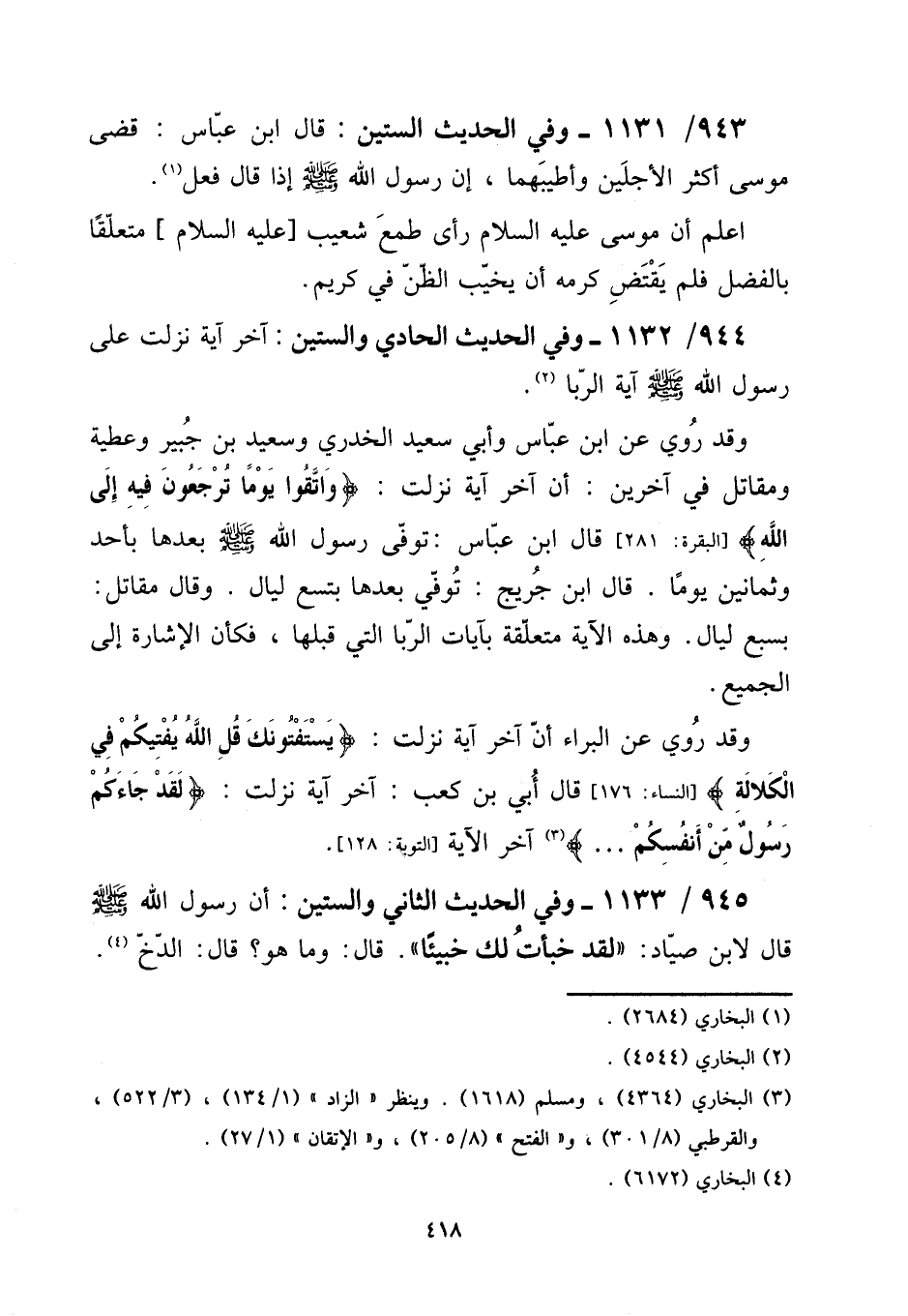 943 - / 1131 وَفِي الحَدِيث السِّتين: قَالَ ابْن عَبَّاس: قضى مُوسَى أَكثر الْأَجَليْنِ وأطيبهما، إِن رَسُول الله صلى الله عَلَيْهِ وَسلم إِذا قَالَ فعل. [15] اعْلَم أَن مُوسَى عَلَيْهِ السَّلَام رأى طمع شُعَيْب [عَلَيْهِ السَّلَام] مُتَعَلقا بِالْفَضْلِ فَلم يقْض كرمه أَن يخيب الظَّن فِي كريم.