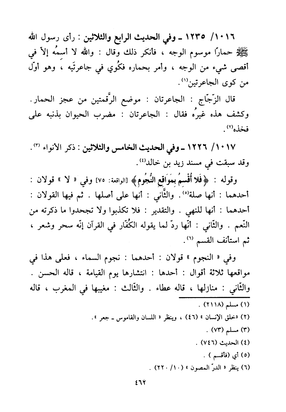 1061 - / 1235 وَفِي الحَدِيث الرَّابِع وَالثَّلَاثِينَ: رأى رَسُول الله صلى الله عَلَيْهِ وَسلم حمارا مَوْسُوم الْوَجْه، فَأنْكر ذَلِك وَقَالَ: وَالله لَا أُسَمِّهِ إِلَّا فِي أقْصَى شَيْء من الْوَجْه، وَأمر بحماره فكوي فِي جَاعِرَتَيْهِ، وَهُوَ أول من كوى الْجَاعِرَتَيْنِ. [15] قَالَ الزّجاج: الجاعرتان: مَوضِع الرقمتين من عجز الْحمار. وكشف هَذِه غَيره فَقَالَ: الجاعرتان: مضرب الْحَيَوَان بِذَنبِهِ على فَخذه.