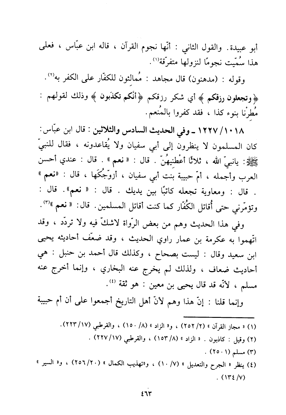 1018 - / 1227 وَفِي الحَدِيث السَّادِس وَالثَّلَاثِينَ: قَالَ ابْن عَبَّاس: كَانَ الْمُسلمُونَ لَا ينظرُونَ إِلَى أبي سُفْيَان وَلَا يُقَاعِدُونَهُ، فَقَالَ للنَّبِي صلى الله عَلَيْهِ وَسلم: يَا نَبِي الله، ثَلَاثًا أعطنيهن. قَالَ: " نعم ". قَالَ: عِنْدِي أحسن الْعَرَب وأجمله، أم حَبِيبَة بنت أبي سُفْيَان، أزَوّجكَهَا، قَالَ: " نعم ". قَالَ: وَمُعَاوِيَة تَجْعَلهُ كَاتبا بَين يَديك. قَالَ: " نعم ". [15] قَالَ: وَتُؤَمِّرنِي حَتَّى أقَاتل الْكفَّار كَمَا كنت أقَاتل الْمُسلمين. قَالَ: " نعم ". وَفِي هَذَا الحَدِيث وهم من بعض الروَاة لَا شكّ فِيهِ وَلَا تردد، وَقد اتهموا بِهِ عِكْرِمَة بن عمار رَاوِي الحَدِيث، وَقد ضعف أَحَادِيثه يحيى ابْن سعيد وَقَالَ: لَيست بصحاح، وَكَذَلِكَ قَالَ أَحْمد بن حَنْبَل: هِيَ أَحَادِيث ضِعَاف، وَلذَلِك لم يخرج عَنهُ البُخَارِيّ، وَإِنَّمَا أخرج عَنهُ مُسلم، لِأَنَّهُ قد قَالَ يحيى بن معِين: هُوَ ثِقَة. [15] وَإِنَّمَا قُلْنَا: إِن هَذَا وهم لِأَن أهل التَّارِيخ أَجمعُوا على أَن أم حَبِيبَة