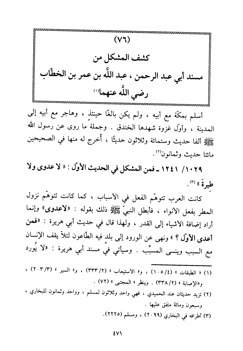 (76) كشف الْمُشكل من مُسْند أبي عبد الرَّحْمَن، عبد الله بن عمر بن الْخطاب رَضِي الله عَنْهُمَا