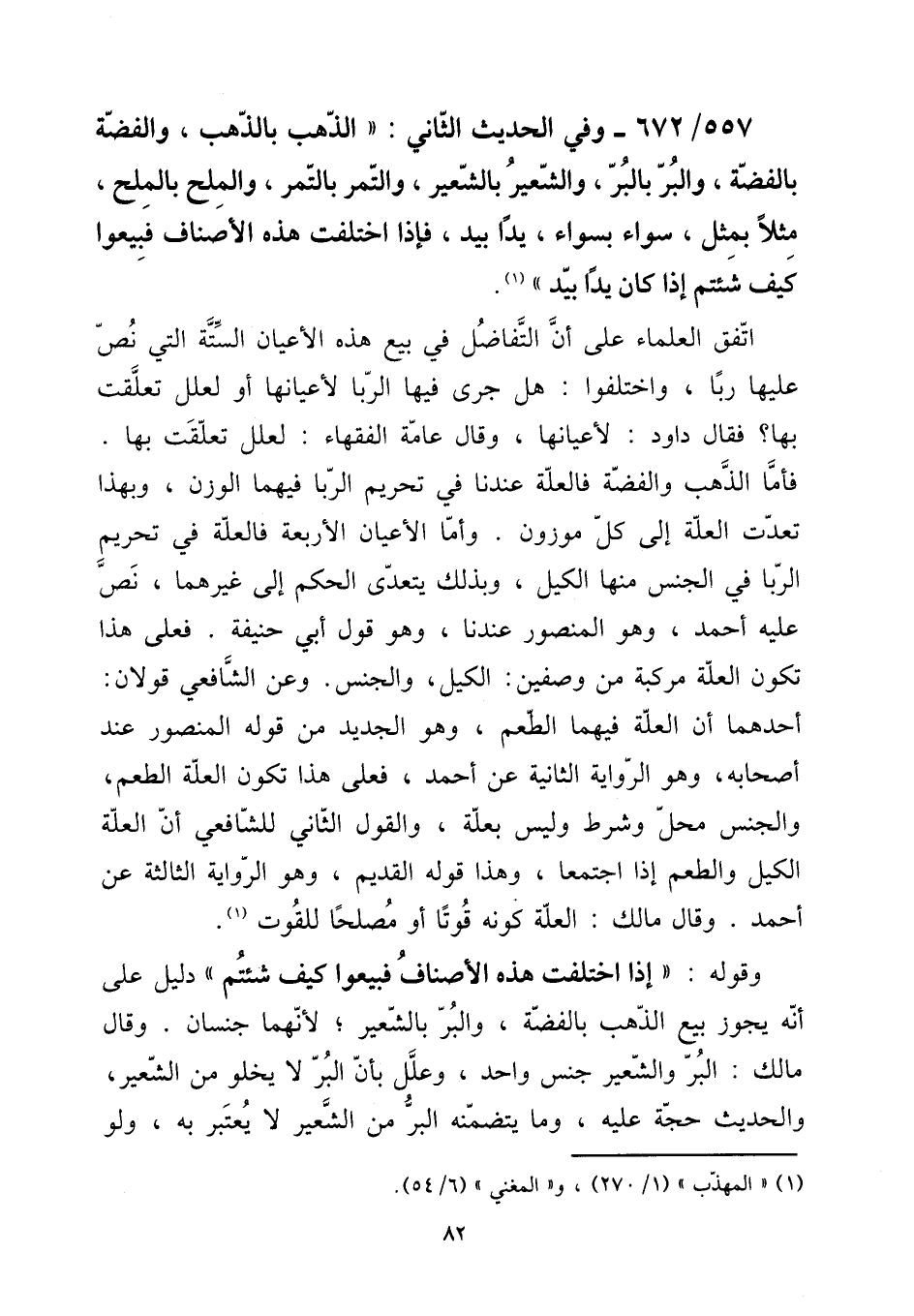 557 - / 672 وَفِي الحَدِيث الثَّانِي: " الذَّهَب بِالذَّهَب، وَالْفِضَّة بِالْفِضَّةِ، وَالْبر بِالْبرِّ، وَالشعِير بِالشَّعِيرِ، وَالتَّمْر بِالتَّمْرِ، وَالْملح بالملح، مثلا بِمثل، سَوَاء بِسَوَاء، يدا بيد، فَإِذا اخْتلفت هَذِه الْأَصْنَاف فبيعوا كَيفَ شِئْتُم إِذا كَانَ يدا بيد ". [15] اتّفق الْعلمَاء على أَن التَّفَاضُل فِي بيع هَذِه الْأَعْيَان السِّتَّة الَّتِي نَص عَلَيْهَا رَبًّا، وَاخْتلفُوا: هَل جرى فِيهَا الرِّبَا لأعيانها أَو لعلل تعلّقت بهَا؟ فَقَالَ دَاوُد: لأعيانها، وَقَالَ عَامَّة الْفُقَهَاء: لعلل تعلّقت بهَا. فَأَما الذَّهَب وَالْفِضَّة فالعلة عندنَا فِي تَحْرِيم الرِّبَا فيهمَا الْوَزْن، وَبِهَذَا تعدت الْعلَّة إِلَى كل مَوْزُون. وَأما الْأَعْيَان الْأَرْبَعَة فالعلة فِي تَحْرِيم الرِّبَا فِي الْجِنْس مِنْهَا الْكَيْل، وَبِذَلِك يتَعَدَّى الحكم إِلَى غَيرهمَا، نَص عَلَيْهِ أَحْمد، وَهُوَ الْمَنْصُور عندنَا، وَهُوَ قَول أبي حنيفَة. فعلى هَذَا تكون الْعلَّة مركبة من وصفين: الْكَيْل، وَالْجِنْس. وَعَن الشَّافِعِي قَولَانِ: أَحدهمَا أَن الْعلَّة فيهمَا الطّعْم، وَهُوَ الْجَدِيد من قَوْله الْمَنْصُور عِنْد أَصْحَابه، وَهُوَ الرِّوَايَة الثَّانِيَة عَن أَحْمد، فعلى هَذَا تكون الْعلَّة الطّعْم، وَالْجِنْس مَحل وَشرط وَلَيْسَ بعلة، وَالْقَوْل الثَّانِي للشَّافِعِيّ أَن الْعلَّة الْكَيْل والطعم إِذا اجْتمعَا، وَهَذَا قَوْله الْقَدِيم وَهُوَ الرِّوَايَة الثَّالِثَة عَن أَحْمد. وَقَالَ مَالك: الْعلَّة كَونه قوتا أَو مصلحا للقوت. [15] وَقَوله: " إِذا اخْتلفت هَذِه الْأَصْنَاف فبيعوا كَيفَ شِئْتُم " دَلِيل على أَنه يجوز بيع الذَّهَب بِالْفِضَّةِ، وَالْبر بِالشَّعِيرِ؛ لِأَنَّهُمَا جِنْسَانِ. وَقَالَ مَالك: الْبر وَالشعِير جنس وَاحِد، وَعلل بِأَن الْبر لَا يَخْلُو من الشّعير، والْحَدِيث حجَّة عَلَيْهِ، وَمَا يتضمنه الْبر من الشّعير لَا يعْتَبر بِهِ، وَلَو
