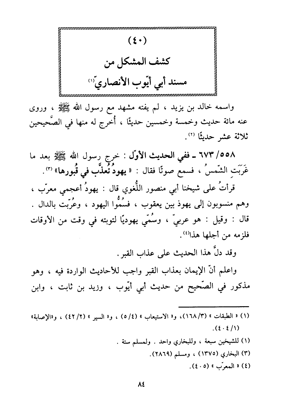 (40) كشف الْمُشكل من مُسْند أبي أَيُّوب الْأنْصَارِيّ [