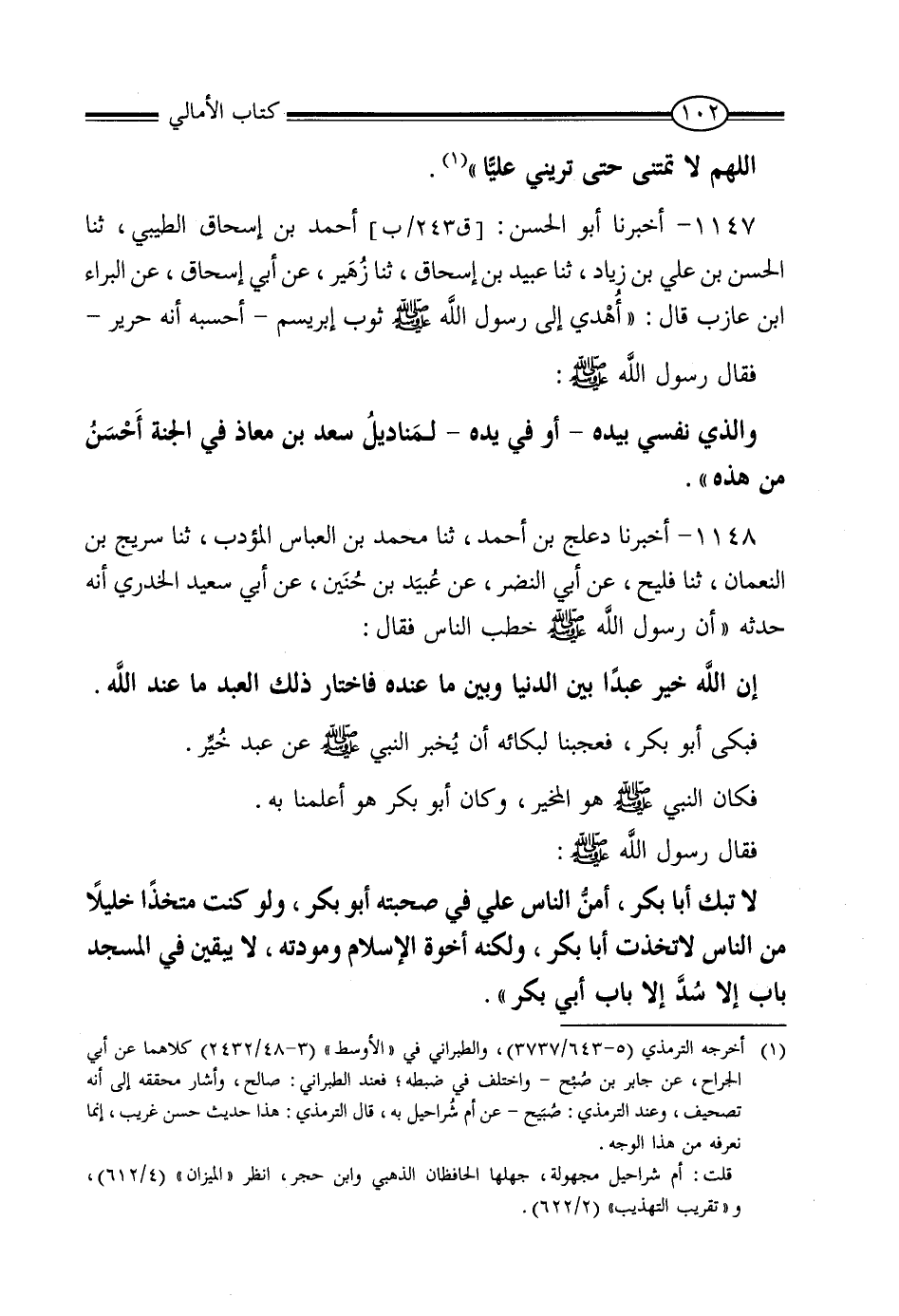 «اللَّهُمَّ لا تُمِتْنِي حَتَّى تُرِيَنِي عَلِيًّا»