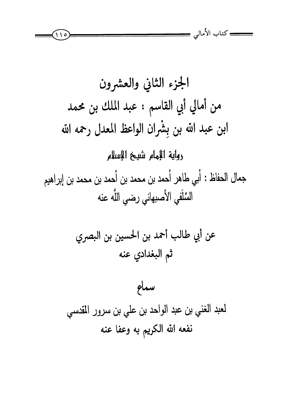 الْجُزْءُ الثَّانِي وَالْعِشْرُونَ مِنْ أمَالِيِّ أَبِي الْقَاسِمِ عَبْدِ الْمَلِكِ بْنِ مُحَمَّدِ بْنِ عَبْدِ اللَّهِ بْنِ بِشْرَانَ الْمُعَدِّلُ الْوَاعِظُ، رَحِمَهُ اللَّهُ.
