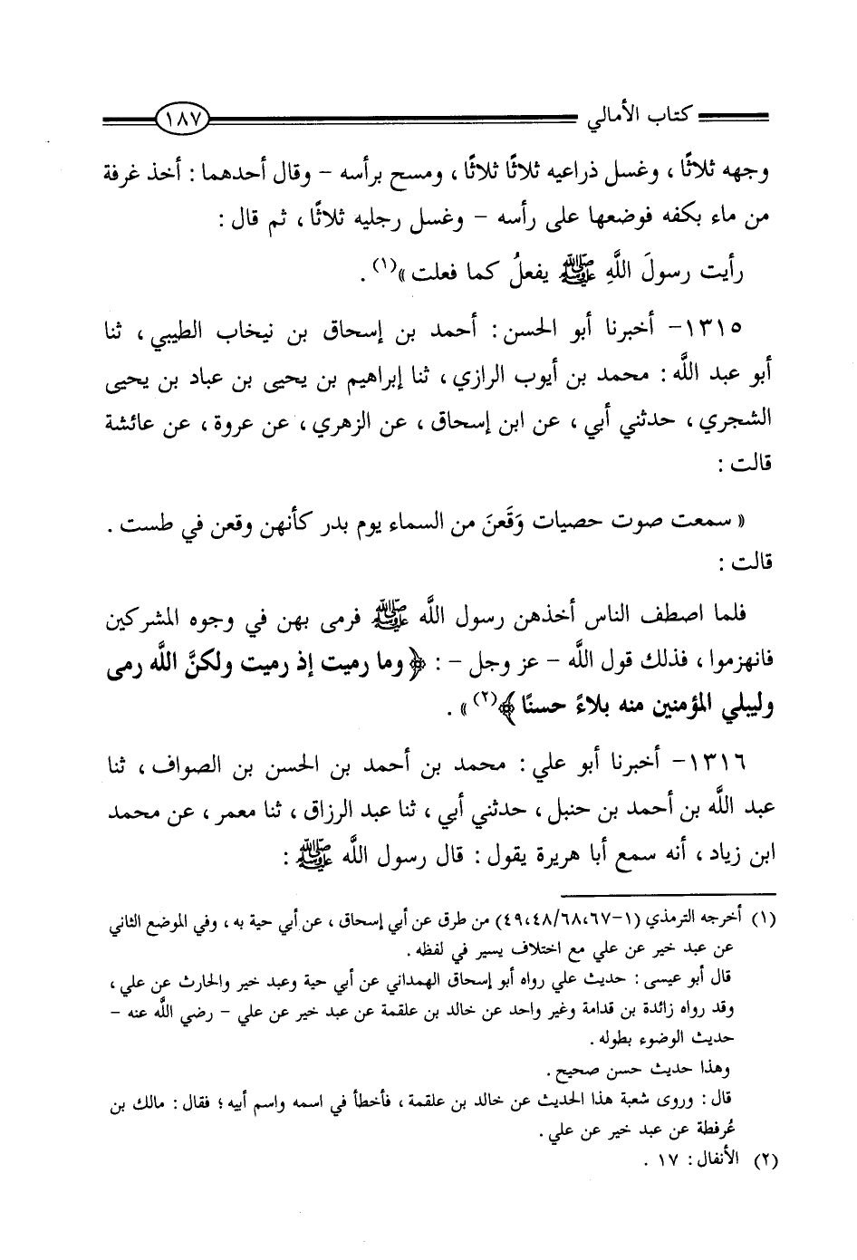 1316 - أَخْبَرَنَا أَبُو عَلِيٍّ مُحَمَّدُ بْنُ أَحْمَدَ بْنِ الْحَسَنِ بْنِ الصَّوَّافُ، ثنا عَبْدُ اللَّهِ بْنُ أَحْمَدَ بْنِ مُحَمَّدِ بْنِ حَنْبَلٍ، حَدَّثَنِي أَبِي، ثنا عَبْدُ الرَّزَّاقِ، ثنا مَعْمَرٌ، عَنْ مُحَمَّدِ بْنِ زِيَادٍ، أَنَّهُ سَمِعَ أَبَا هُرَيْرَةَ , يَقُولُ: قَالَ رَسُولُ اللَّهِ صَلَّى اللَّهُ عَلَيْهِ وَسَلَّمَ: