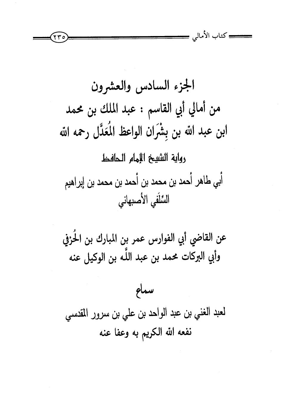 الْجُزْءُ السَّادِسُ وَالْعِشْرُونَ مِنْ أَمَالِي أَبِي الْقَاسِمِ عَبْدِ الْمَلِكِ بْنِ مُحَمَّدِ بْنِ عَبْدِ اللَّهِ بْنِ بِشْرَانَ الْمُعَدِّلُ رَحِمَهُ اللَّهُ.