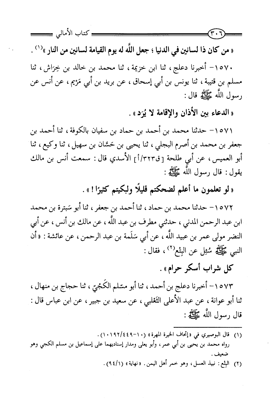 1572 - حَدَّثَنَا مُحَمَّدُ بْنُ حَمَّادٍ، ثنا أَحْمَدُ بْنُ جَعْفَرٍ، ثنا أَبُو سَبْرَةَ بْنُ مُحَمَّدِ بْنِ عَبْدِ الرَّحْمَنِ الْمَدَنِيُّ، حَدَّثَنِي مُطَرِّفُ بْنُ عَبْدِ اللَّهِ، عَنْ مَالِكِ بْنِ أَنَسٍ، عَنْ أَبِي النَّضْرِ مَوْلَى عُمَرَ بْنِ عُبَيْدِ اللَّهِ، عَنْ أَبِي سَلَمَةَ بْنِ عَبْدِ الرَّحْمَنِ، عَنْ عَائِشَةَ، أَنّ النَّبِيَّ صَلَّى اللَّهُ عَلَيْهِ وَسَلَّمَ سُئِلَ عَنِ الْبِتْعِ، فَقَالَ: «كُلُّ شَرَابٍ أَسْكَرَ حَرَامٌ»