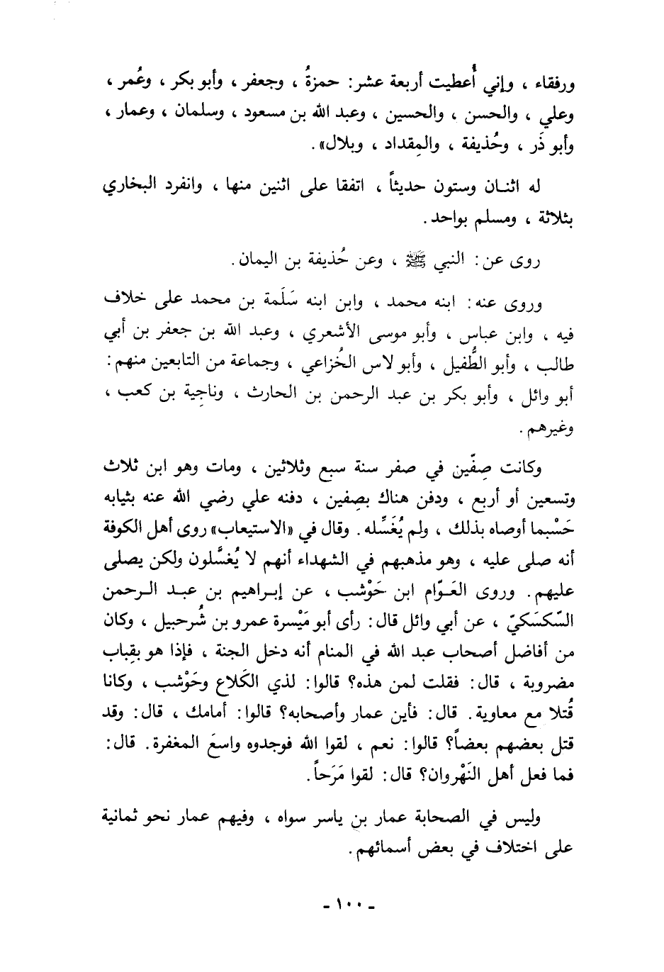 وليس في الصحابة عمار بن ياسر سواه، وفيهم عمار نحو ثمانية على اختلاف في بعض أسمائهم.