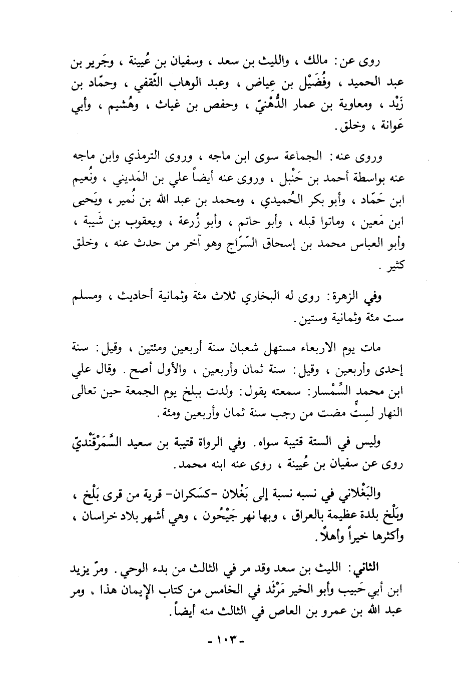 وليس في الستة قتيبة سواه. وفي الرواة قتيبة بن سعيد السَّمَرْقَنْديّ روى عن سفيان بن عُيينة، روى عنه ابنه محمَّد.