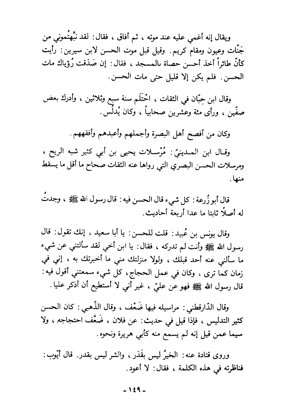 وقال الدّارقطني: مراسيله فيها ضَعْف، وقال الذّهبي: كان الحسن كثير التدليس، فإذا قيل في حديث: عن فلان، ضَعَّف احتجاجه، ولا سيما عمن قيل إنه لم يسمع منه كأبي هريرة ونحوه.