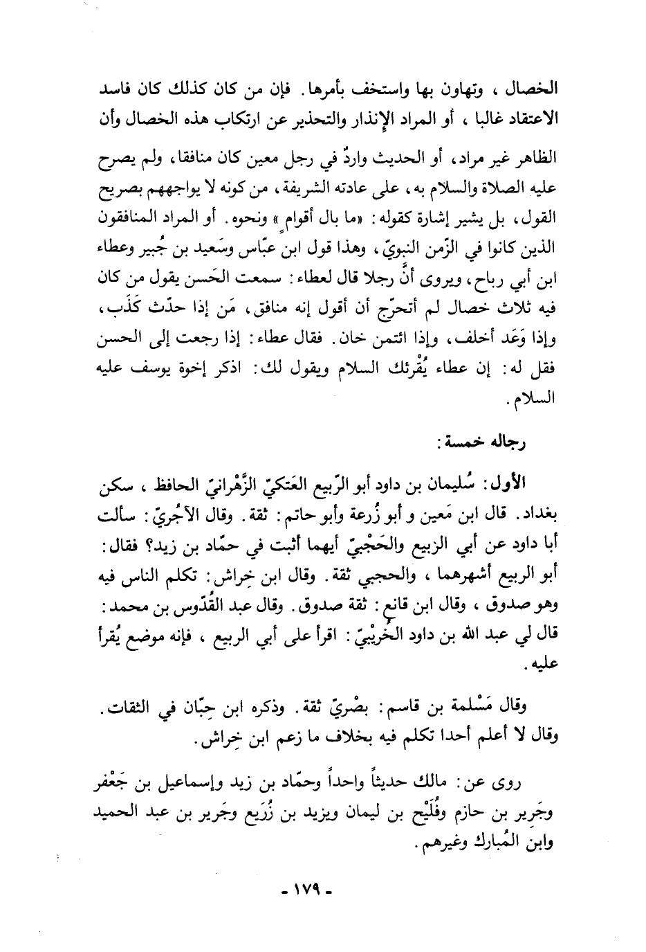 الأول: سُليمان بن داود أبو الرّبيع العَتكيّ الزَّهْرانيّ الحافظ، سكن بغداد. قال ابن مَعين وأبو زُرعة وأبو حاتم: ثقة. وقال الآجُريّ: سألت أبا داود عن أبي الربيع والحَجْبيّ أيهما أثبت في حماد بن زيد؟ فقال: أبو الربيع أشهرهما، والحجبي ثقة. وقال ابن خِراش: تكلم الناس فيه وهو صدوق، وقال ابن قانع: ثقة صدوق. وقال عبد القُدّوس بن محمَّد: قال لي عبد الله بن داود الخُريْبيّ: اقرأ على أبي الربيع، فإنه موضع يُقرأ عليه.