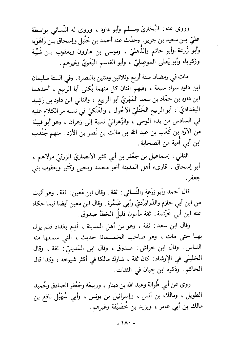 وقال ابن سعد: ثقة، وهو من أهل المدينة، قَدِم بغداد فلم يزل بها حتى مات، وهو صاحب الخمسمائة حديث، التي سمعها منه الناس. وقال ابن خراش: صدوق، وقال ابن المَدينيّ: ثقة، وقال الخليلي في الإِرشاد: كان ثقة، شارك مالكا في أكثر شيوخه، وكذا قال الحاكم. وذكره ابن حِبان في الثقات.