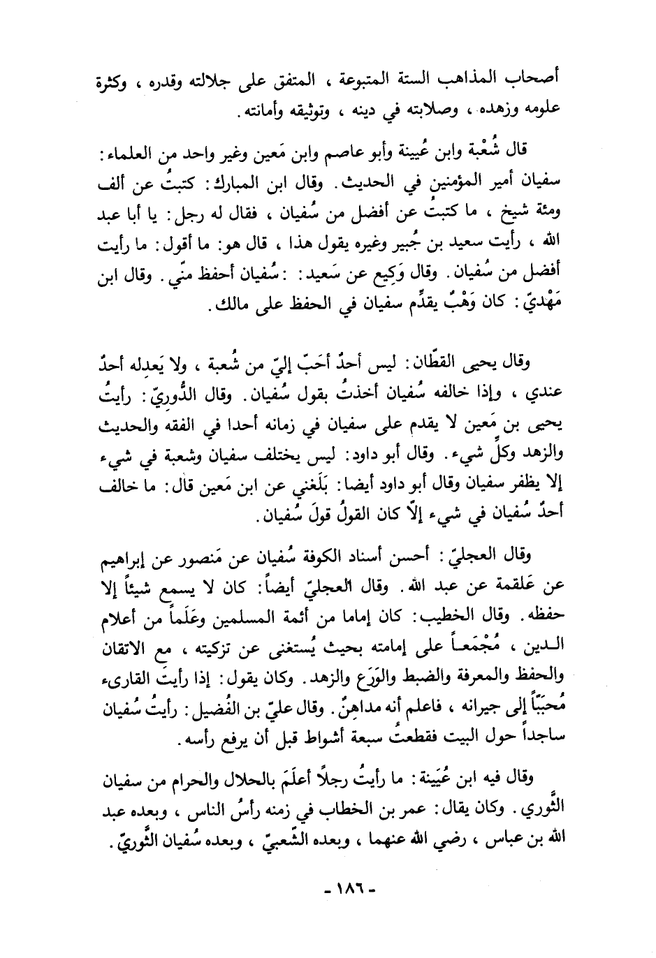 أصحاب المذاهب الستة المتبوعة، المتفق على جلالته وقدره، وكثرة علومه وزهده، وصلابته في دينه، وتوثيقه وأمانته.