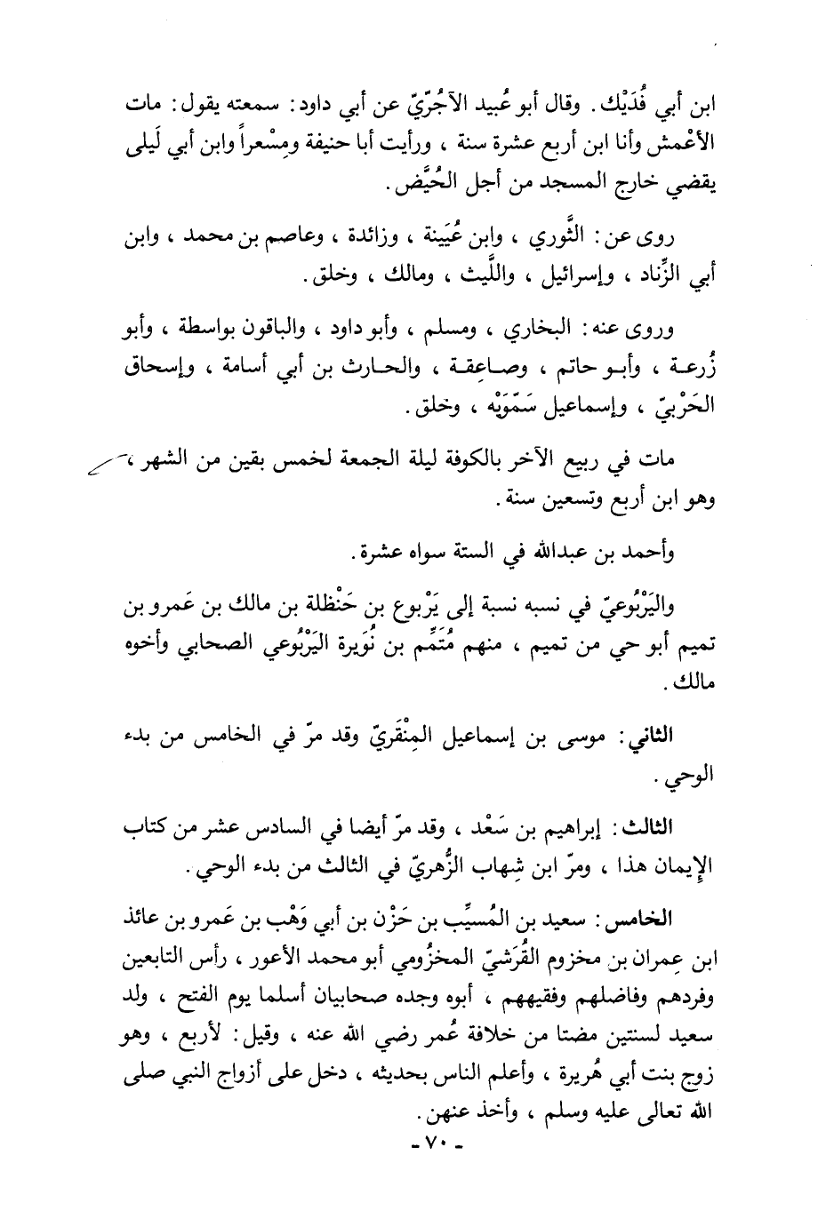 الثالث: إبراهيم بن سَعْد، وقد مرّ أيضًا في السادس عشر من كتاب الإِيمان هذا، ومرّ ابن شِهاب الزُّهريّ في الثالث من بدء الوحي.