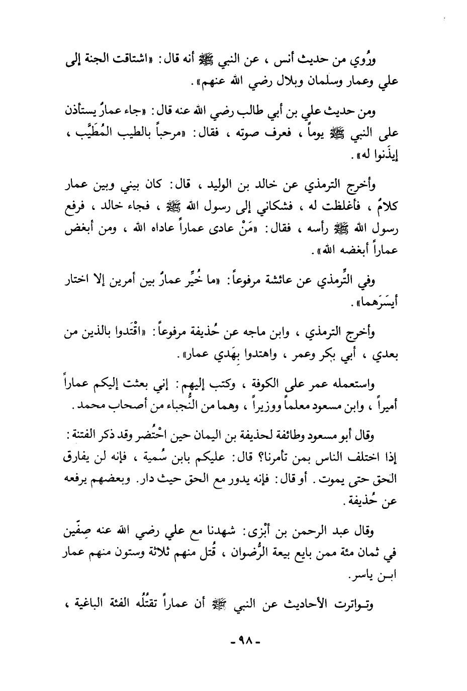 وتواترت الأحاديث عن النبي - صلى الله عليه وسلم - أن عمارًا تقتُلُه الفئة الباغية،