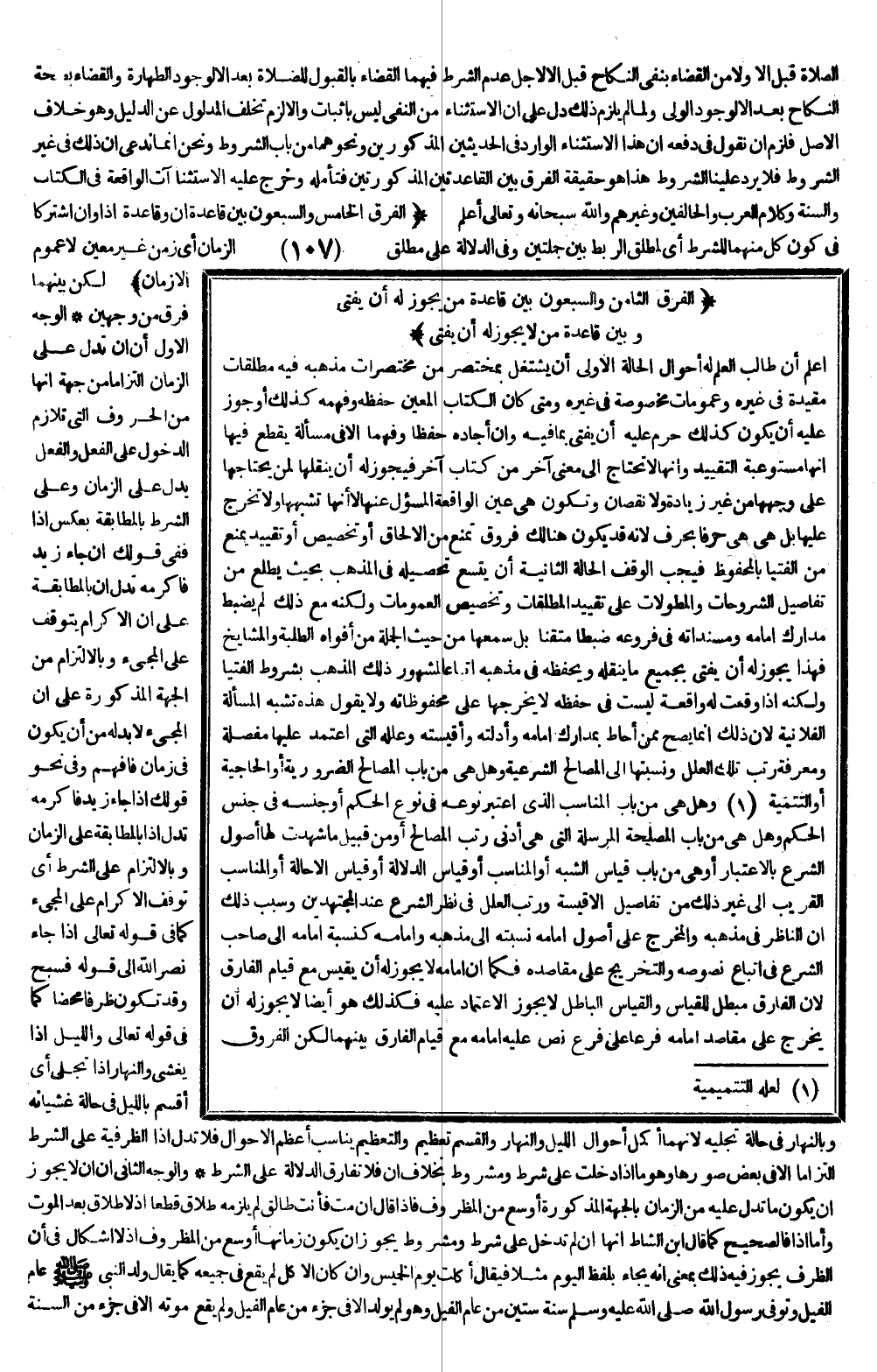 (الْفَرْقُ الثَّامِنُ وَالسَّبْعُونَ الْفَرْقُ بَيْنَ قَاعِدَةِ مَنْ يَجُوزُ لَهُ أَنْ يُفْتِيَ وَبَيْنَ قَاعِدَةِ مَنْ لَا يَجُوزُ لَهُ أَنْ يُفْتِيَ) اعْلَمْ أَنَّ طَالِبَ الْعِلْمِ لَهُ أَحْوَالٌ الْحَالَةُ الْأُولَى أَنْ يَشْتَغِلَ بِمُخْتَصَرٍ مِنْ مُخْتَصَرَاتِ مَذْهَبِهِ فِيهِ مُطْلَقَاتٌ مُقَيَّدَةٌ فِي غَيْرِهِ وَعُمُومَاتٌ مَخْصُوصَةٌ فِي غَيْرِهِ وَمَتَى كَانَ الْكِتَابُ الْمُعَيَّنُ حَفِظَهُ وَفَهِمَهُ كَذَلِكَ أَوْ جَوَّزَ عَلَيْهِ أَنْ يَكُونَ كَذَلِكَ حَرُمَ عَلَيْهِ أَنْ يُفْتِيَ بِمَا فِيهِ وَإِنْ أَجَادَهُ حِفْظًا وَفَهْمًا إلَّا فِي مَسْأَلَةٍ يُقْطَعُ فِيهَا أَنَّهَا مُسْتَوْعَبَةُ التَّقْيِيدِ وَأَنَّهَا لَا تَحْتَاجُ إلَى مَعْنًى آخَرَ مِنْ كِتَابٍ آخَرَ فَيَجُوزُ لَهُ أَنْ يَنْقُلَهَا لِمَنْ يَحْتَاجُهَا عَلَى وَجْهِهَا مِنْ غَيْرِ زِيَادَةٍ وَلَا نُقْصَانٍ وَتَكُونُ هِيَ عَيْنَ الْوَاقِعَةِ الْمَسْئُولِ عَنْهَا لَا أَنَّهَا تُشْبِهُهَا وَلَا تُخَرَّجُ عَلَيْهَا بَلْ هِيَ هِيَ حَرْفًا بِحَرْفٍ لِأَنَّهُ قَدْ يَكُونُ هُنَالِكَ فُرُوقٌ تَمْنَعُ مِنْ الْإِلْحَاقِ أَوْ تَخْصِيصٌ أَوْ تَقْيِيدٌ يَمْنَعُ مِنْ الْفُتْيَا بِالْمَحْفُوظِ فَيَجِبُ الْوَقْفُ.