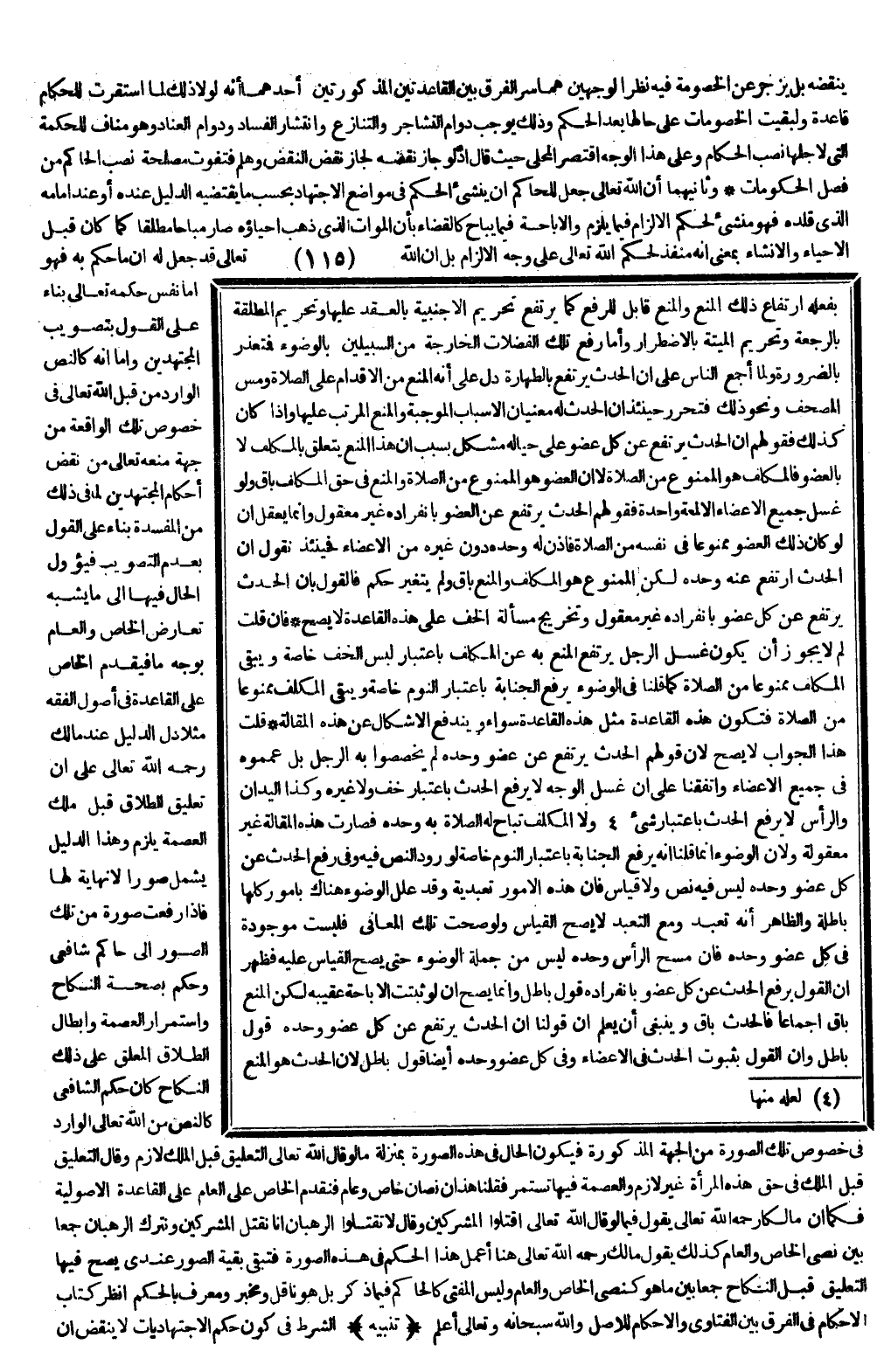وَأَمَّا رَفْعُ تِلْكَ الْفَضَلَاتِ الْخَارِجَةِ مِنْ السَّبِيلَيْنِ بِالْوُضُوءِ فَمُتَعَذَّرٌ بِالضَّرُورَةِ وَلَمَّا أَجْمَعَ النَّاسُ عَلَى أَنَّ الْحَدَثَ يَرْتَفِعُ بِالطَّهَارَةِ دَلَّ عَلَى أَنَّهُ الْمَنْعُ مِنْ الْإِقْدَامِ عَلَى الصَّلَاةِ وَمَسِّ الْمُصْحَفِ وَنَحْوِ ذَلِكَ فَتَحَرَّرَ حِينَئِذٍ أَنَّ الْحَدَثَ لَهُ مَعْنَيَانِ الْأَسْبَابُ الْمُوجِبَةُ وَالْمَنْعُ الْمُرَتَّبُ عَلَيْهَا وَإِذَا كَانَ كَذَلِكَ فَقَوْلُهُمْ إنَّ الْحَدَثَ يَرْتَفِعُ عَنْ كُلِّ عُضْوٍ عَلَى حِيَالِهِ مُشْكِلٌ بِسَبَبِ أَنَّ هَذَا الْمَنْعَ يَتَعَلَّقُ بِالْمُكَلَّفِ لَا بِالْعُضْوِ فَالْمُكَلَّفُ هُوَ الْمَمْنُوعُ مِنْ الصَّلَاةِ لَا إنَّ الْعُضْوَ هُوَ الْمَمْنُوعُ مِنْ الصَّلَاةِ وَالْمَنْعُ فِي حَقِّ الْمُكَلَّفِ بَاقٍ وَلَوْ غَسَلَ جَمِيعَ الْأَعْضَاءِ إلَّا لُمْعَةً وَاحِدَةً فَقَوْلُهُمْ الْحَدَثُ يَرْتَفِعُ عَنْ الْعُضْوِ بِانْفِرَادِهِ غَيْرُ مَعْقُولٍ وَإِنَّمَا يُعْقَلُ أَنْ لَوْ كَانَ ذَلِكَ الْعُضْوُ مَمْنُوعًا فِي نَفْسِهِ مِنْ الصَّلَاةِ فَإِذْنٌ لَهُ وَحْدَهُ دُونَ غَيْرِهِ مِنْ الْأَعْضَاءِ فَحِينَئِذٍ نَقُولُ إنَّ الْحَدَثَ ارْتَفَعَ عَنْهُ وَحْدَهُ لَكِنَّ الْمَمْنُوعَ هُوَ الْمُكَلَّفُ وَالْمَنْعُ بَاقٍ وَلَمْ يَتَغَيَّرْ حُكْمُ الْقَوْلِ بِأَنَّ الْحَدَثَ يَرْتَفِعُ عَنْ كُلِّ عُضْوٍ بِانْفِرَادِهِ غَيْرِ مَعْقُولٍ وَتَخْرِيجُ مَسْأَلَةِ الْخُفِّ عَلَى هَذِهِ الْقَاعِدَةِ لَا يَصِحُّ فَإِنْ قُلْت لِمَ لَا يَجُوزُ أَنْ يَكُونَ غُسْلُ الرِّجْلِ يَرْتَفِعُ الْمَنْعُ بِهِ عَنْ الْمُكَلَّفِ بِاعْتِبَارِ لُبْسِ الْخُفِّ خَاصَّةً وَيَبْقَى الْمُكَلَّفُ مَمْنُوعًا مِنْ الصَّلَاةِ كَمَا قُلْنَا فِي الْوُضُوءِ يَرْفَعُ الْجَنَابَةَ بِاعْتِبَارِ النَّوْمِ خَاصَّةً وَيَبْقَى الْمُكَلَّفُ مَمْنُوعًا مِنْ الصَّلَاةِ فَتَكُونُ هَذِهِ الْقَاعِدَةُ مِثْلَ هَذِهِ الْقَاعِدَةِ سَوَاءً وَيَنْدَفِعُ الْإِشْكَالُ عَنْ هَذِهِ الْمَقَالَةِ قُلْتُ هَذَا الْجَوَابُ لَا يَصِحُّ لِأَنَّ قَوْلَهُمْ الْحَدَثُ يَرْتَفِعُ عَنْ عُضْوٍ وَحْدَهُ لَمْ يُخَصِّصُوا بِهِ الرِّجْلَ بَلْ عَمَّمُوهُ فِي جَمِيعِ الْأَعْضَاءِ وَاتَّفَقْنَا عَلَى أَنَّ غُسْلَ الْوَجْهِ لَا يَرْفَعُ الْحَدَثَ بِاعْتِبَارِ خُفٍّ وَلَا غَيْرِهِ.