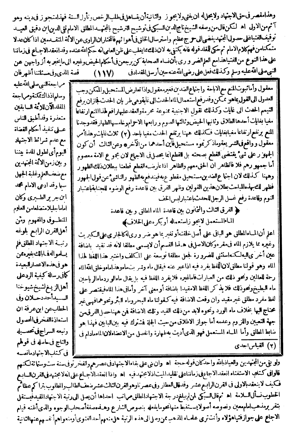 ثُمَّ قَالَ السُّبْكِيُّ لِمَنْ لَمْ يَبْلُغْ دَرَجَةَ الِاجْتِهَادِ الْمُطْلَقِ مَرَاتِبُ إحْدَاهَا أَنْ يَصِلَ إلَى رُتْبَةِ الِاجْتِهَادِ الْمُقَيَّدِ فَيَسْتَقِلُّ بِتَقْرِيرِ مَذْهَبِ إمَامٍ مُعَيَّنٍ وَنُصُوصِهِ أُصُولًا يَسْتَنْبِطُ مِنْهَا نَحْوُ مَا يَفْعَلُهُ بِنُصُوصِ الشَّارِعِ وَهَذِهِ صِفَةُ أَصْحَابِ الْوُجُوهِ وَاَلَّذِي أَظُنُّهُ قِيَامَ الْإِجْمَاعِ عَلَى جَوَازِ فُتْيَا هَؤُلَاءِ وَأَنْتَ تَرَى عُلَمَاءَ الْمَذْهَبِ مِمَّنْ وَصَلَ إلَى هَذِهِ الرُّتْبَةِ هَلْ مَنَعَهُمْ أَحَدٌ الْفَتْوَى أَوْ مَنَعُوا هُمْ أَنْفُسَهُمْ عَنْهَا؛ الثَّانِيَةُ
