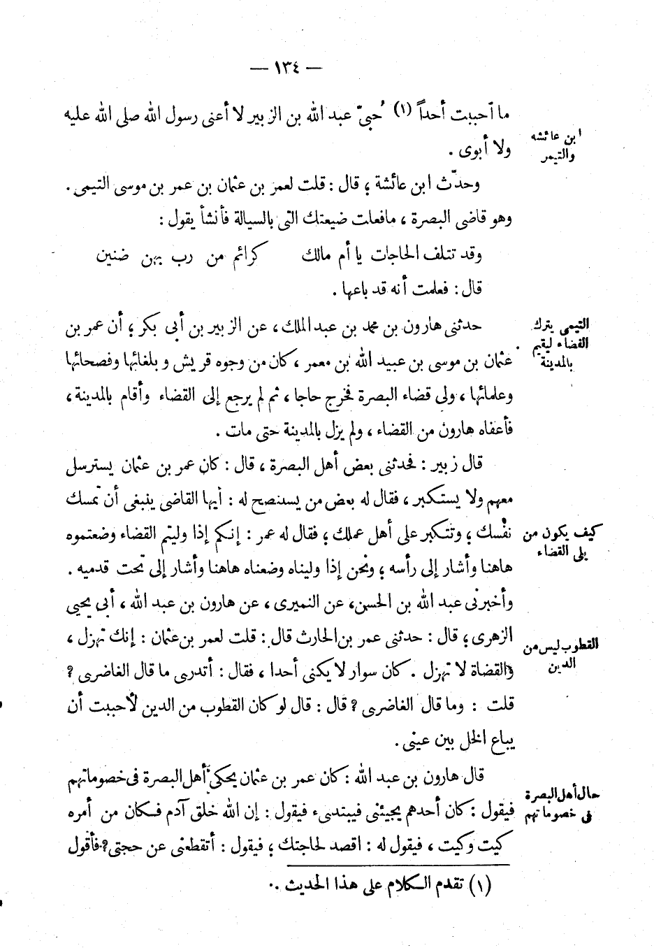 وأَخْبَرَنِي عَبْد اللهِ بْن الْحَسَن، عَن النميري، عَن هارون بْن عَبْد اللهِ، أبي يحيى الزهري؛ قال: حَدَّثَنِي عُمَر بْن الحارث قال: قلت لِعُمَرَ بْن عثمان: إنك تهزل، القضاة لا تهزل.