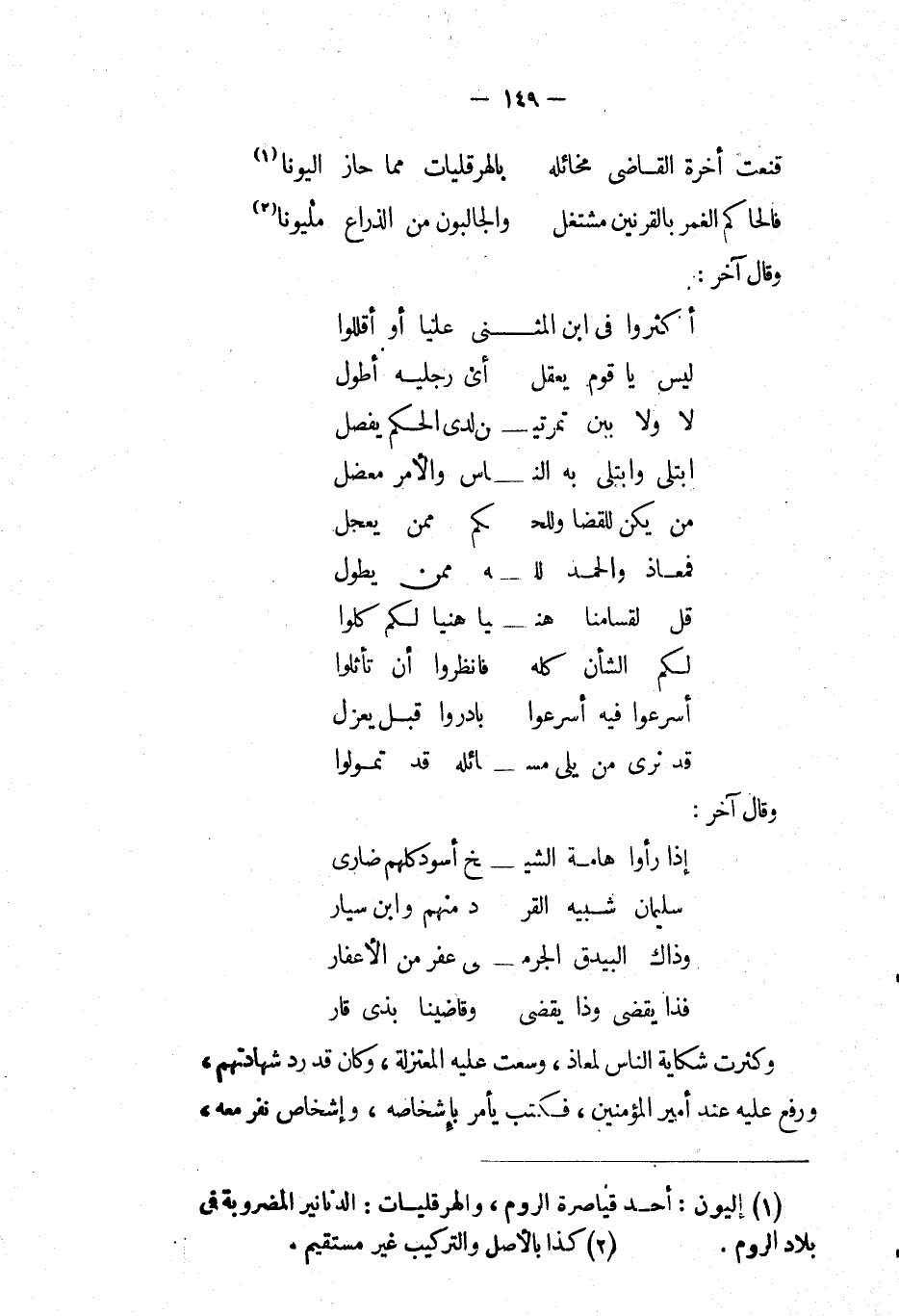 قنعت أخرة القاضي مخائله ... بالهرقليات مما حاز اليونا