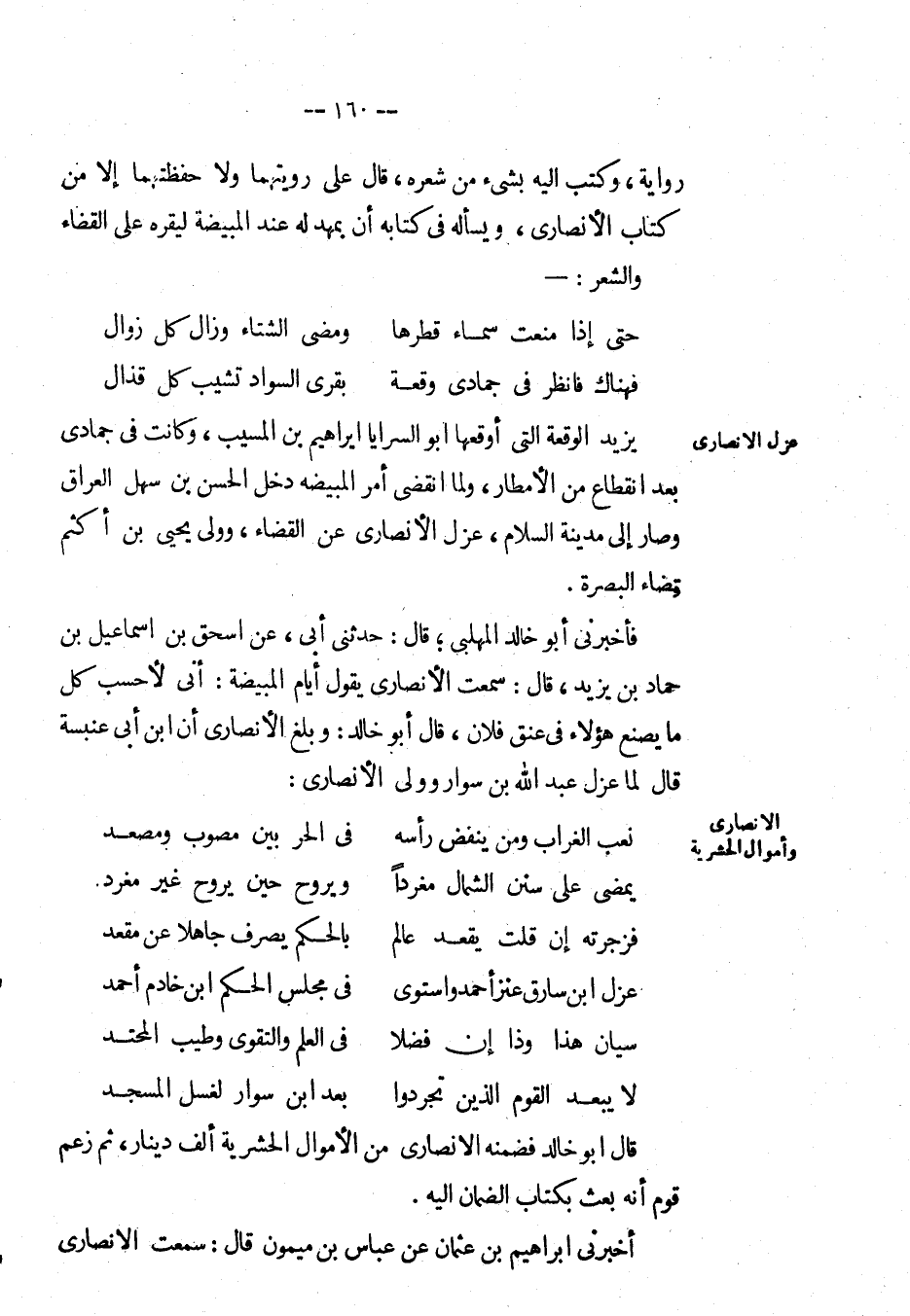 يزيد الوقعة التي أوقعها أَبُو السرايا إبراهيم بْن المسيب، وكانت في جمادي بعد انقطاع من الأمطار، ولما انقضى أمر المبيضة دخل الْحَسَن بْن سهل العراق وصار إِلَى مدينة السلام، عزل الأنصاري عَن القضاء، وولى يحيى بْن أكثم قضاء البصرة.