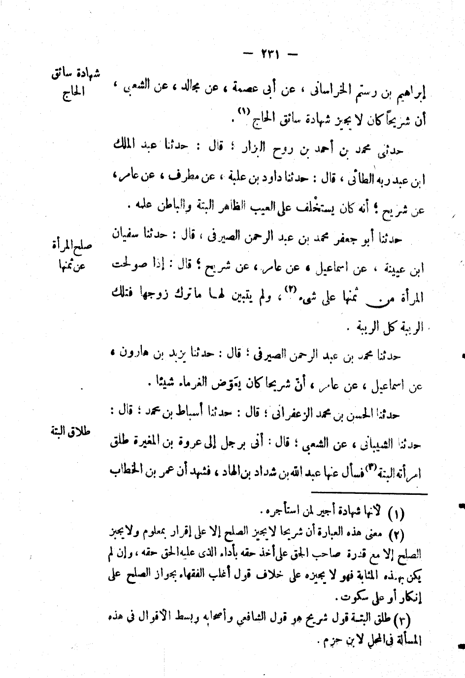 حَدَّثَنِي مُحَمَّد بْن أَحْمَد بْن روح البزار؛ قال: حَدَّثَنَا عَبْدُ الملك ابن عَبْد ربه الطائي، قال: حَدَّثَنَا داود بْن علبة، عَن مطرف، عَن عامر، عَن شريح؛ أنه كان يستخلف على العيب الظاهر البتة والباطن علمه.